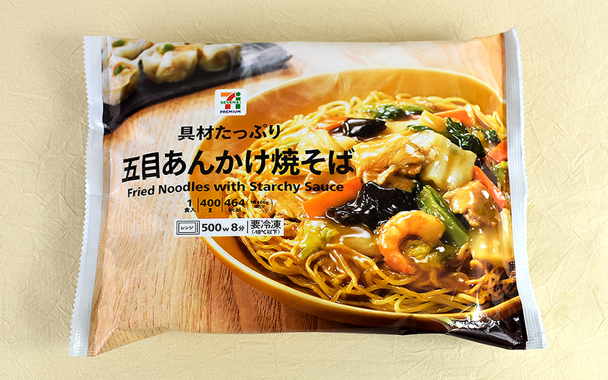 主食やおかず、おつまみに至るまで様々な冷凍食品を展開するセブン-イレブン。昼食にパパっと食べられる商品を探していたところ、セブンプレミアムから販売されている「五目あんかけ焼そば」(397円/税込)を発見しました。多種多様な野菜が入った食べごたえバツグンな一品です。