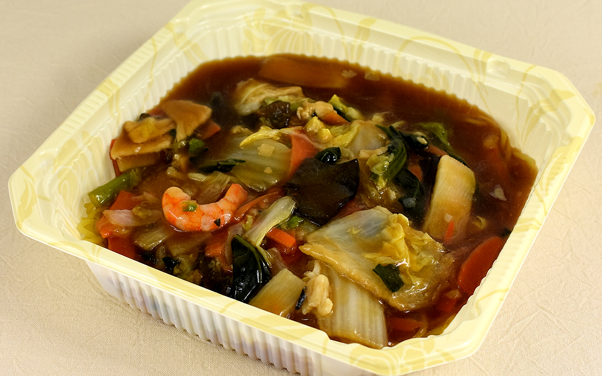 あんを盛りつけた時に麺が見えなくなるほど、多種多様な具材が入っているのも同商品の魅力。白菜・チンゲン菜・たけのこ・きくらげ・豚肉・えびなどがたっぷりトッピングされています。特に大きくカットされた白菜はみずみずしくてシャキシャキ。中華料理の定番食材であるきくらげもコリコリ感がアクセントになりますよ。