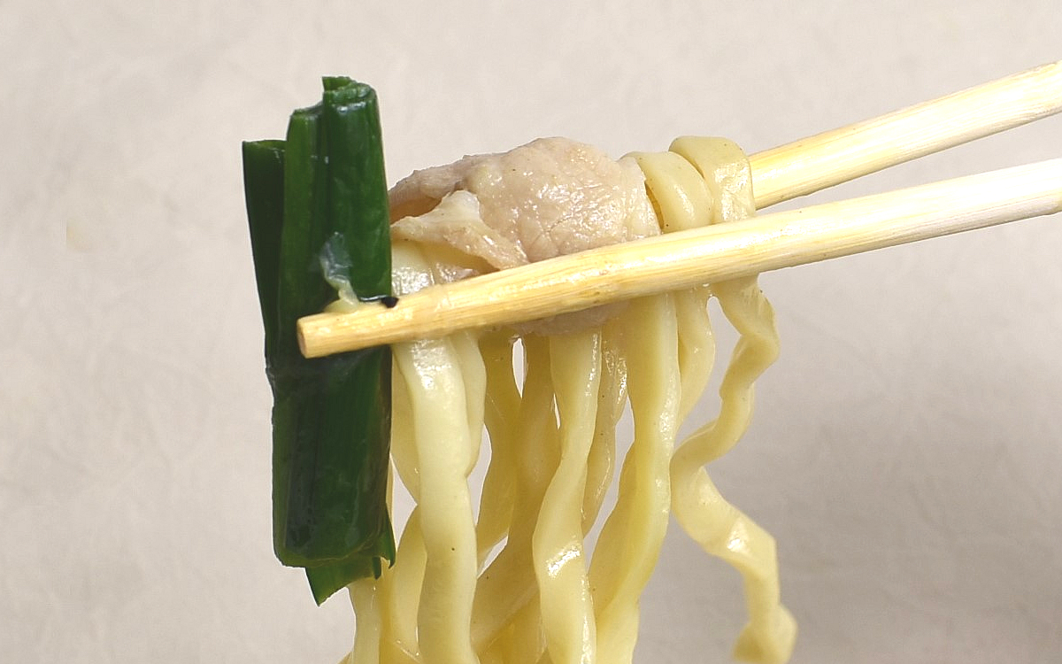 ひと口食べた瞬間、口の中に広がったのはスープの深いコク。あっさりした味わいながら、野菜の濃厚な旨味を感じることができます。塩辛過ぎずほどよい濃さなので、思わず最後まで飲み干したくなってしまうかもしれません。さらに、しっかりと噛みごたえのある麺もGOOD。スープがよく絡む極太平打ち麺でコシの強いもちもち食感が特徴ですよ。