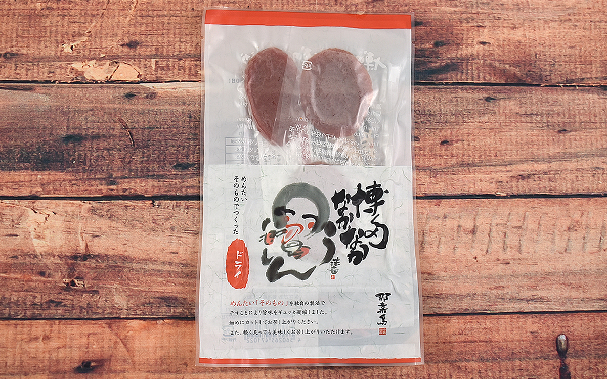 同商品を取り扱う中島商店は福岡県福岡市に本社を置き、辛子明太子の製造・販売で知られる昭和29年創業の老舗。「博多なかなかドライ」は2003年に中島商店が初めて発売した、「明太子のからすみ風」の“ドライ明太子”版になります。
