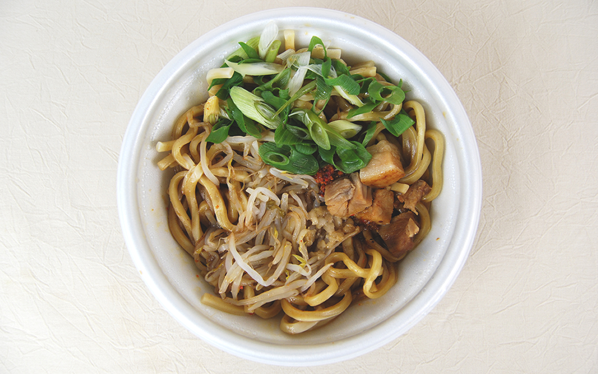 続いて具材に目を向けてみましょう。長めにカットされたねぎは、刻みねぎに比べてシャキシャキとした歯ごたえをキープ。脂の絡んだもやしの味わいもいいアクセントになっています。具材の中では特にゴロゴロの焼豚が食感・味ともに格別。ほどけるように柔らかく、口の中いっぱいに広がる優しいコクがたまりません。