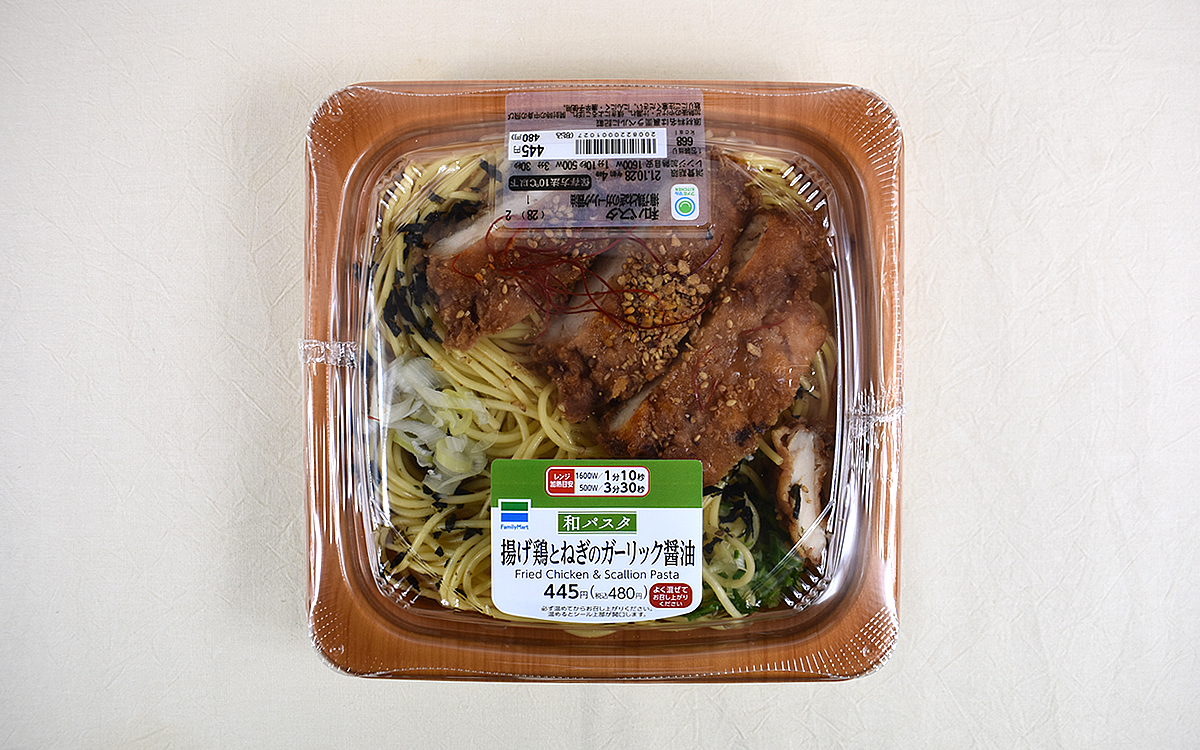 突然ですが、みなさんは「パスタ」を選ぶ時にどのソースがお好みですか? 定番中の定番ならミートソース。他にカルボナーラやペペロンチーノもおなじみですが、醤油の香りがこうばしい“和風パスタ”も忘れてはいけません。そこで今回は、10月26日からファミリーマートで販売がスタートした「和パスタ 揚げ鶏とねぎのガーリック醤油」(480円/税込)をセレクト。どんな味わいを楽しませてくれるのか、じっくり確かめていきましょう。