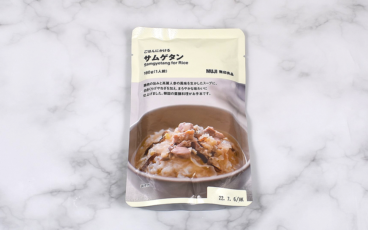 無印良品が販売している「ごはんにかける」シリーズは、その名の通りごはんにかけるだけでおいしく食べられるレトルト食品。ガパオやルーロー飯など海外の料理をはじめ、様々な種類が展開されています。中でも今回は「ごはんにかける サムゲタン」(290円/税込)をピックアップ。一体どのような味わいを楽しめるのでしょうか?