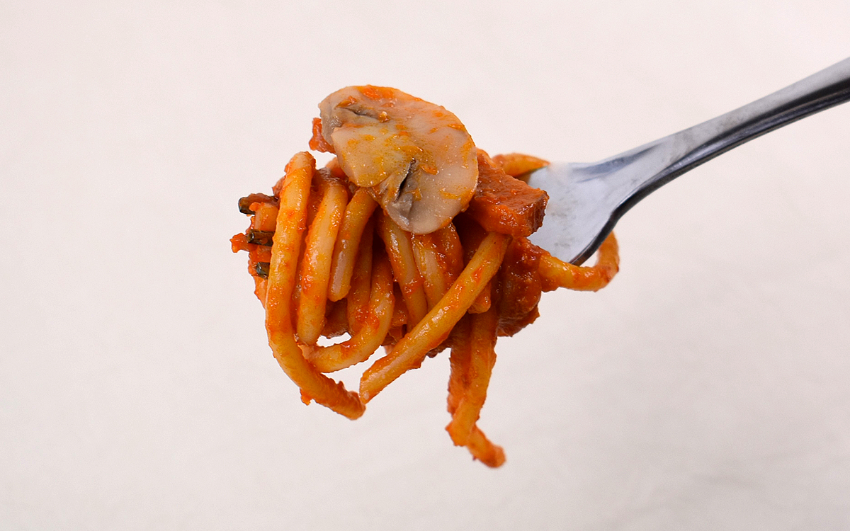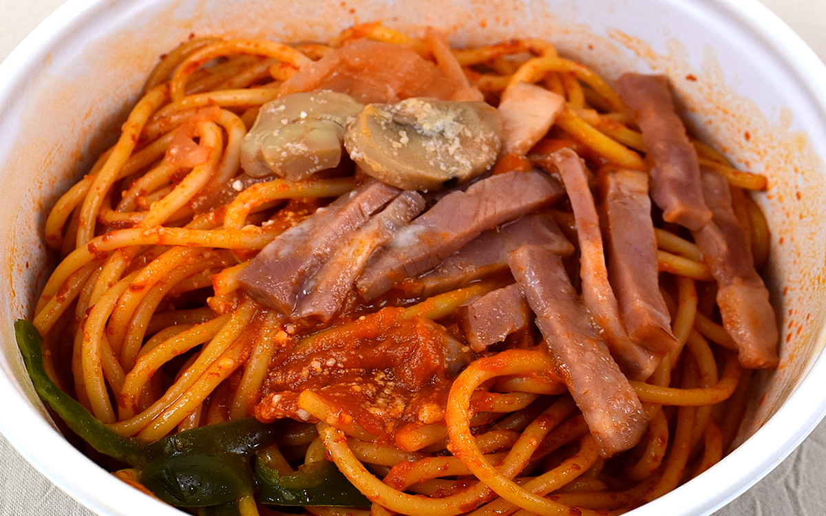 そんな名店が監修したナポリタンは、フタを開けた瞬間に立ち上がるケチャップソースの香りから魅力が爆発。ソースをたっぷり絡めた太麺を一口いただいただけで、濃厚なケチャップの風味が一気に口の中を覆っていきました。
