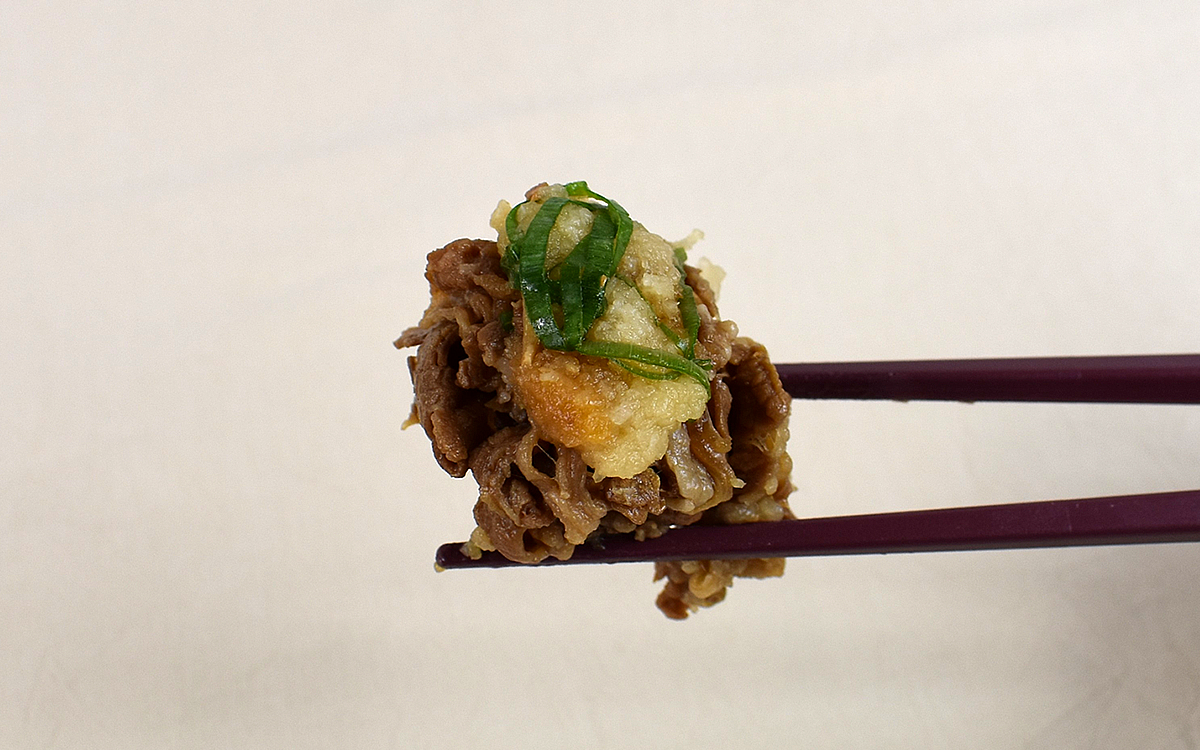 最初のひと口こそおろしポン酢の味わいが大きなインパクトを放ちますが、柔らかな歯ごたえの牛肉も存在感をアピール。噛めば噛むほど広がる牛肉の旨味とおろしポン酢の風味が混ざり合うことで、従来の牛丼よりもさっぱりした味わいに変化していくのが印象的です。