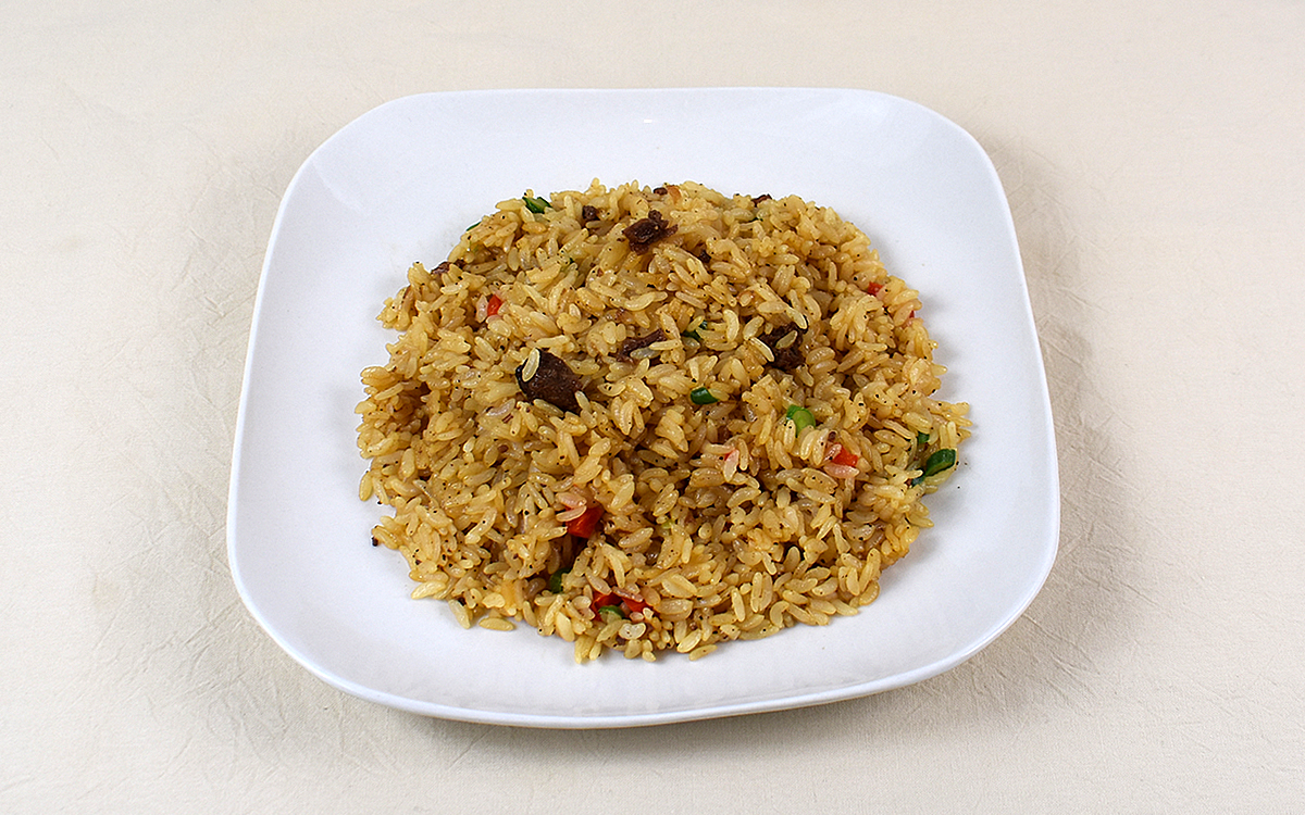ピラフに彩りを与える具材も、醤油とにんにくの香りに負けじと存在感をアピール。特に牛肉は噛んだ瞬間にジュワっと旨味が広がっていき、奥深いコクを感じさせてくれます。ピーマン&いんげんの野菜コンビもそれぞれ味わいがあり、ピラフの風味を引き立てるアクセントに。
