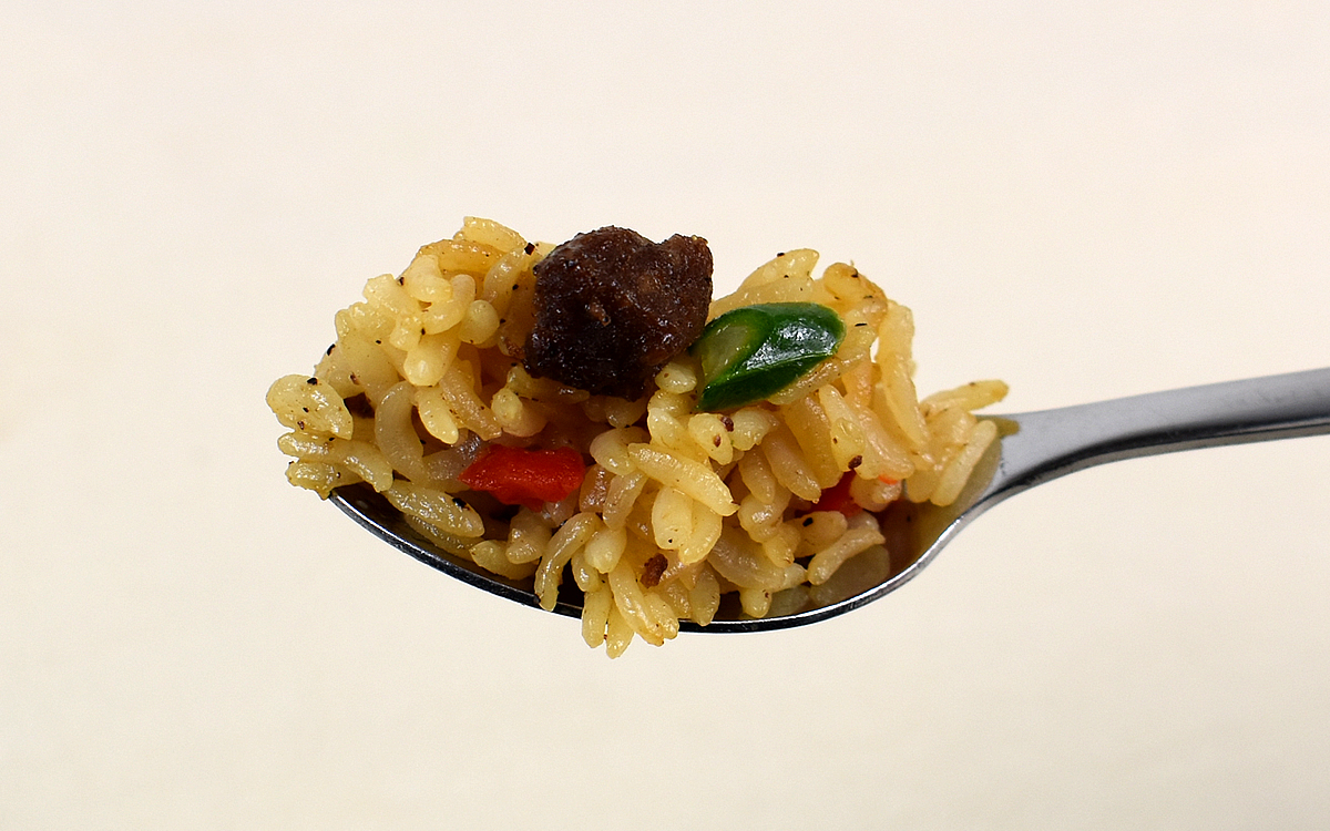 冷凍ピラフは解凍後に油でベタベタしないか気になっていたものの、ぎっとりした油っぽさを感じさせないのも同商品の大きな魅力。香辛料が放つスパイシーさも絶妙なバランスで、ガーリックピラフの味わいを最後まで損ねることはありませんでした。