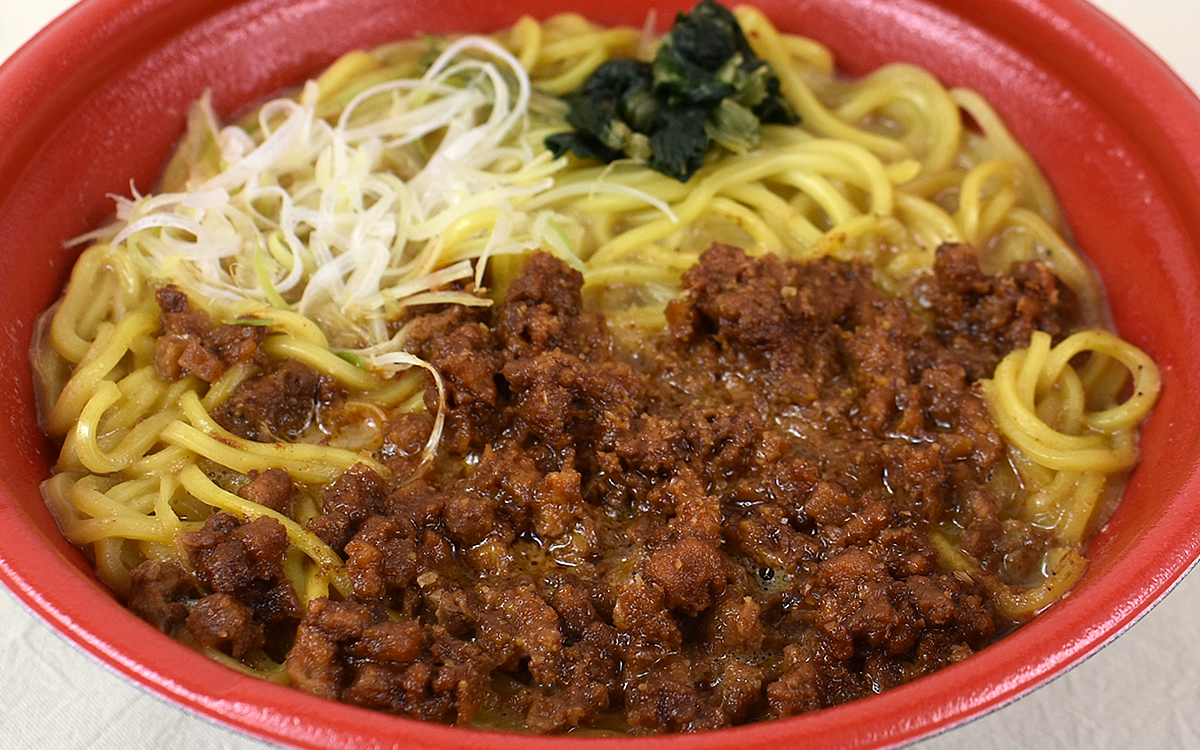 焙煎した練りごまを使ったスープが特徴の同商品。同じくごまの風味を効かせた肉そぼろ・ほうれん草・ねぎの3つがのっており、トッピングは至ってシンプルです。また、別で袋入りの花椒がついているため、自分で好きな辛さに調節できるのもポイント。