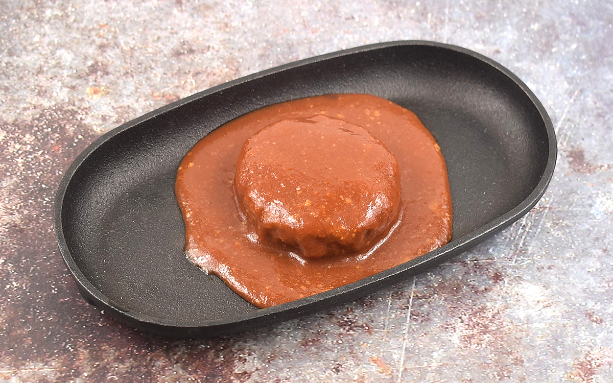 「肉バル缶」の最大のポイントは、調理したハンバーグをそのまま缶詰にしているところ。長く保管できるのはもちろん、レトルト食品なのにもかかわらず“粗びきの肉感”をしっかりと残しています。それでは、実際に同商品を味わってみましょう。