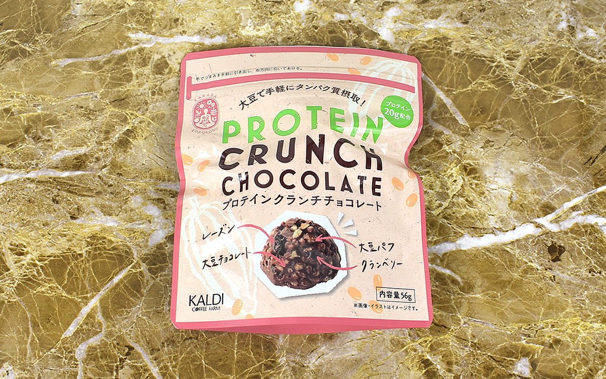 ●「カラダよろこぶプロテインクランチチョコレート 56g」(カルディ)