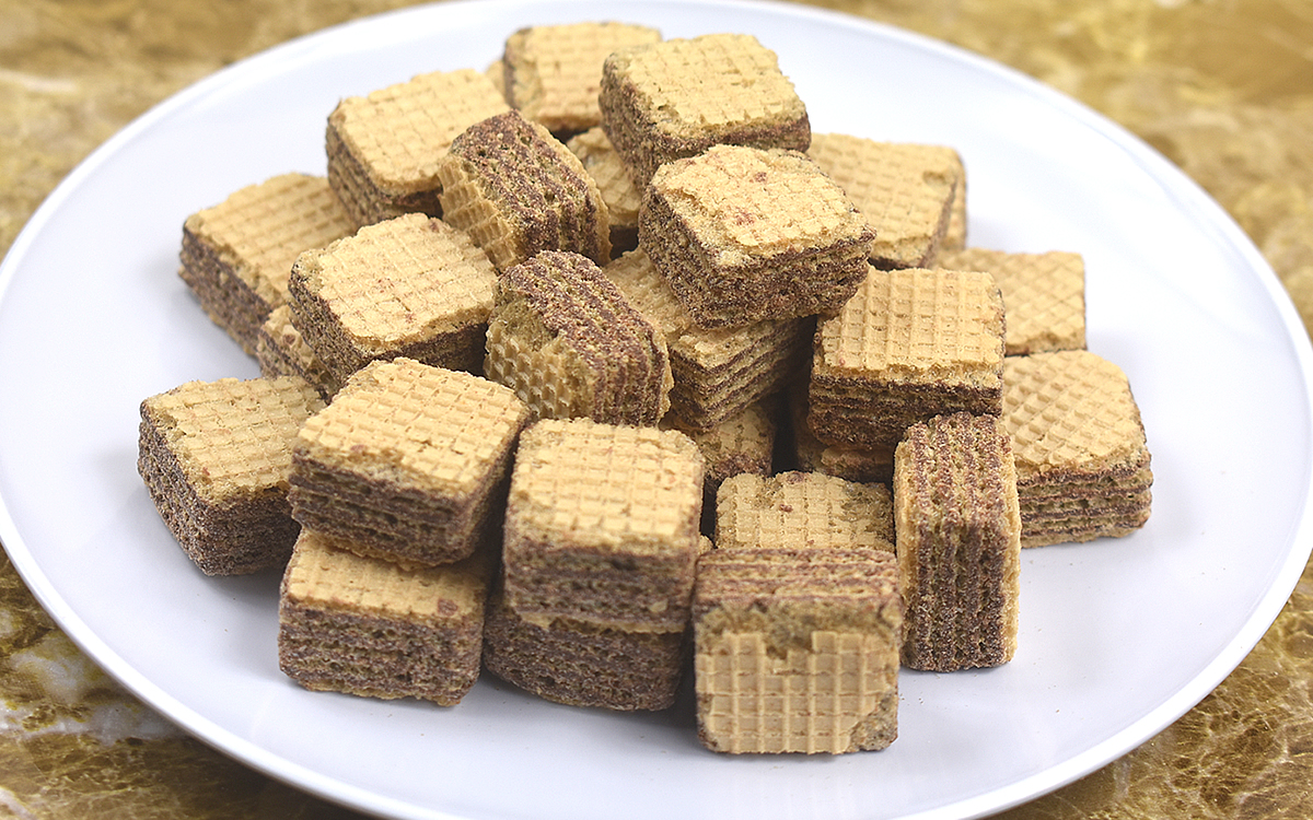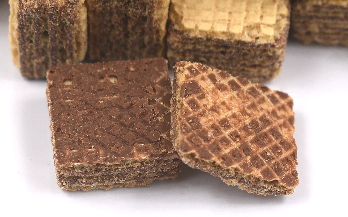 さっそく1つ食べてみたところ、こうばしいウエハースの風味とチョコクリームのまろやかな甘みが口の中に広がりました。ウエハースのサクサク食感と、何層にも重ねられたチョコクリームがトロっと舌の上で溶けるのがたまりません。クリームのなめらかな舌触りのおかげで、ウエハース特有のパサパサ感も軽減されている印象。口あたりが軽くて飽きないため、手が止まりません。