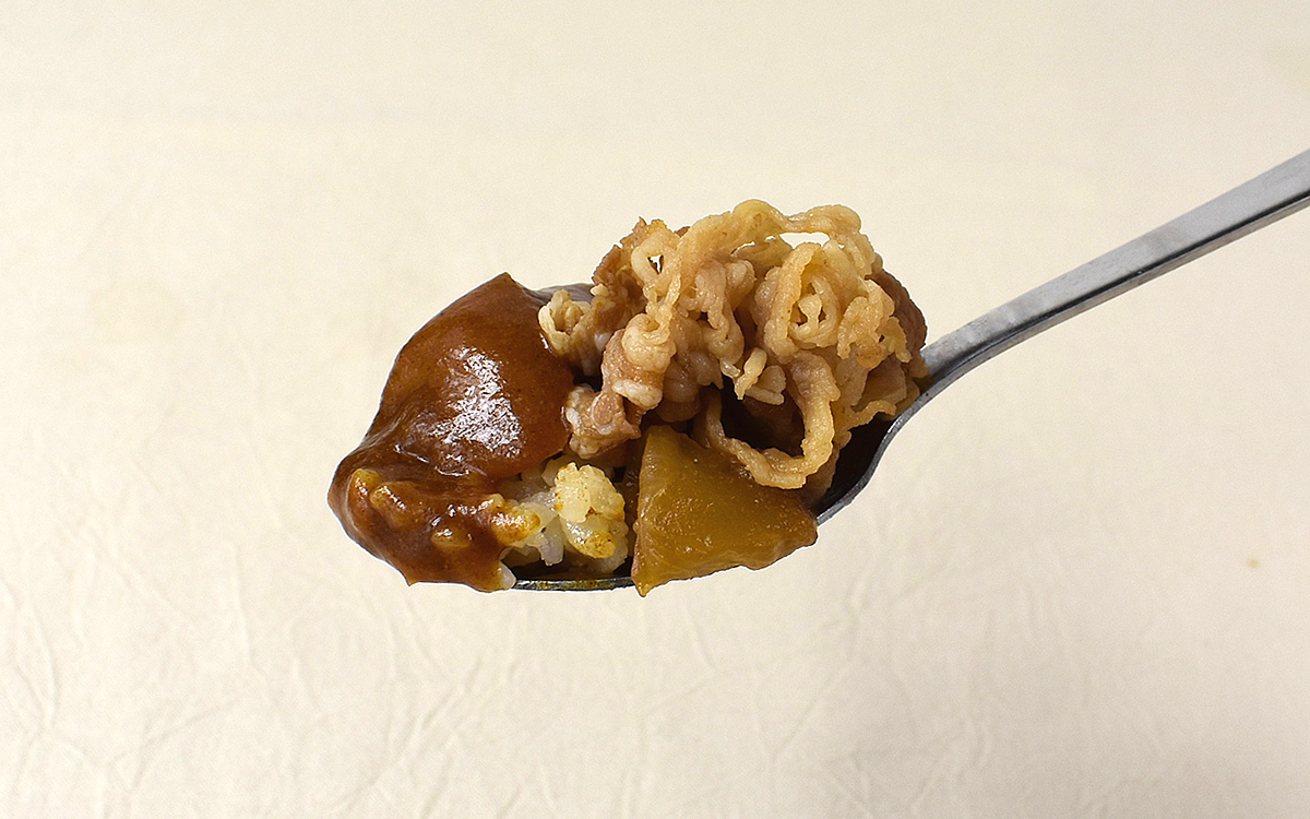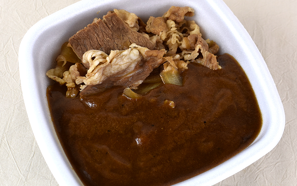 吉野家のニュースリリースによれば、カルダモンやコショーといった粗挽きスパイス、クミン、コリアンダー、クローブ、ナツメグなど31種類のスパイスを配合。またトッピングの牛肉、玉ねぎを活かすため、鰹節の風味、りんご濃縮果汁、マンゴーピューレを使用しています。それでは、実際に本格スパイスカレーを食べてみましょう。