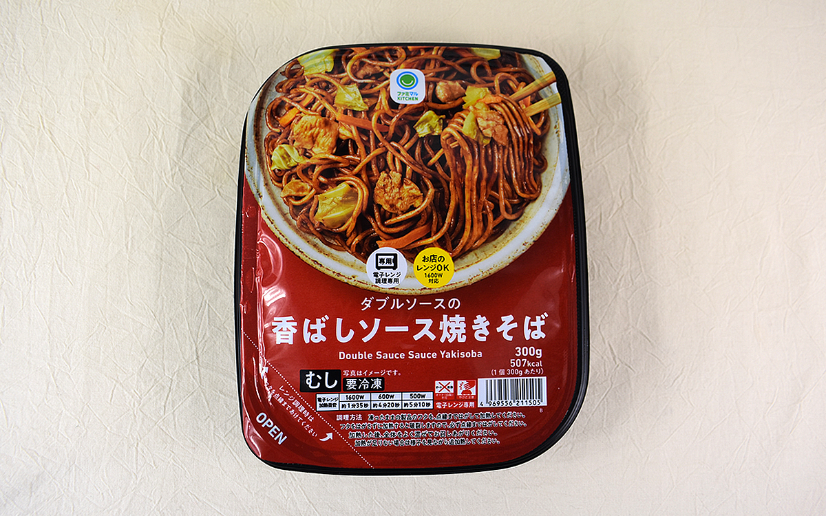B級グルメとして世代を問わず高い人気を誇る“焼きそば”。いつでも手軽に食べられるカップ焼きそばを自宅に常備しているという人も多いのではないでしょうか。もちろん自分で作るよりは時間も労力もかかりませんが、お湯を沸かしたり湯切りをしたりといった手間はかかるもの。そこで今回は、ファミリーマートの冷凍食品「ダブルソースの香ばしソース焼きそば」(248円/税込)を購入しました。レンチンするだけですぐに食べられるうえ、2種類のソースで味つけされているのが特徴です。