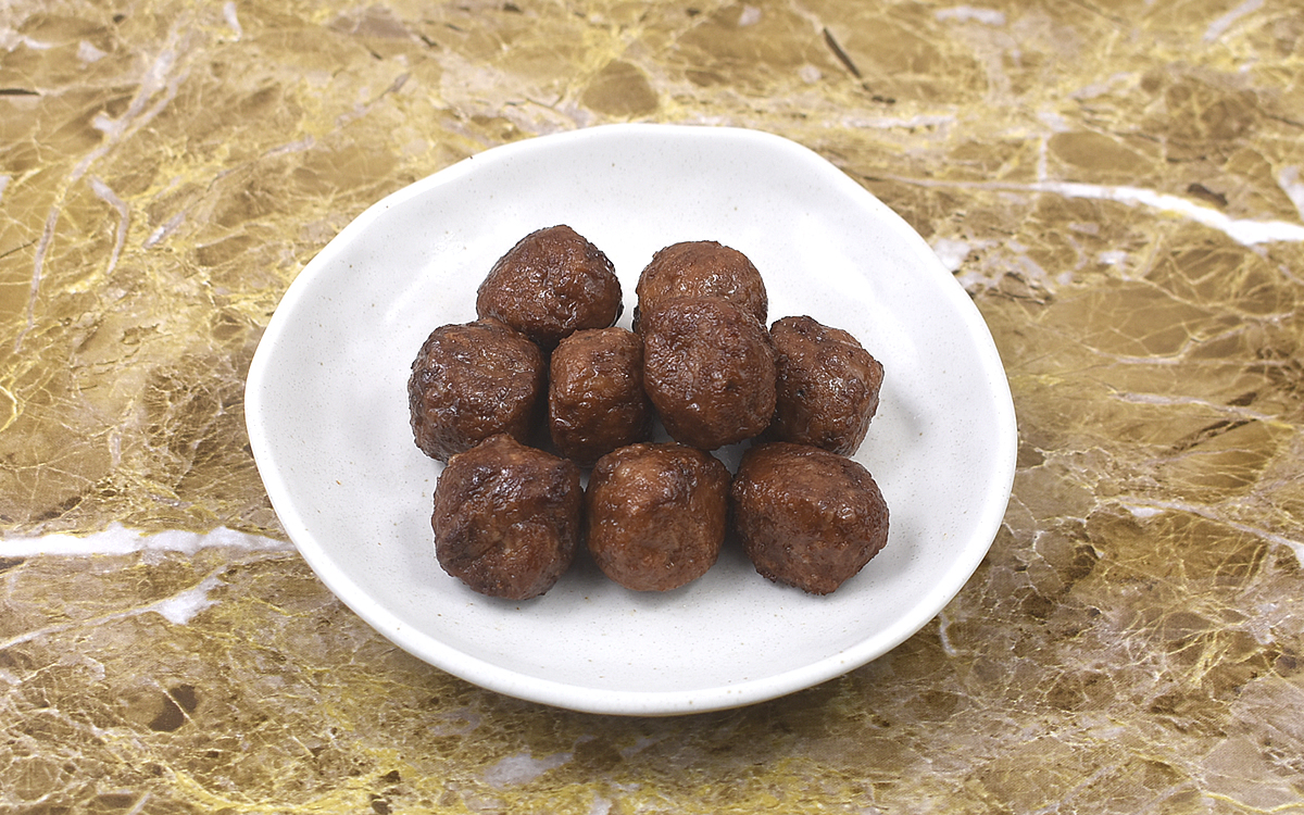 中身ぎっしりのミートボールは、弾力のある歯ごたえがGOOD。後味も含めて、大豆たんぱくからなるミートボールの魅力をたっぷり堪能することができました。同商品はもともと味がついていますが、トマトソース煮込みやあんかけなどの調理用としても使えますよ。