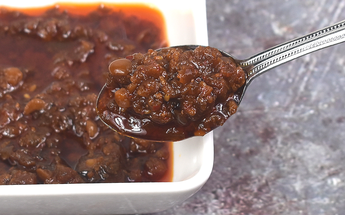 さっそく肉みその瓶を開封してみたところ、甜面醤(テンメンジャン)やごま油のこうばしい香りがふわり。その一方で目を引くのが、まるでビジュアルの段階から“辛さ”を主張しているような具材の色合いです。“四川風”ということで、一体どれほど辛いのでしょうか……。