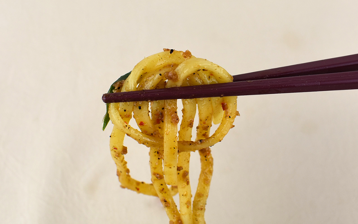 そんな有名店が監修した一品には、もちもちとした太麺とサバ、イワシなどの魚粉を使用した辛うま醤油だれが入っています。実際にレンジで温めた後、麺からは魚介類ならではの食欲をそそるこうばしい香りが。プロの味を期待させるフレーバーを感じたら、一気に同メニューに対する期待値が上昇しますよ。