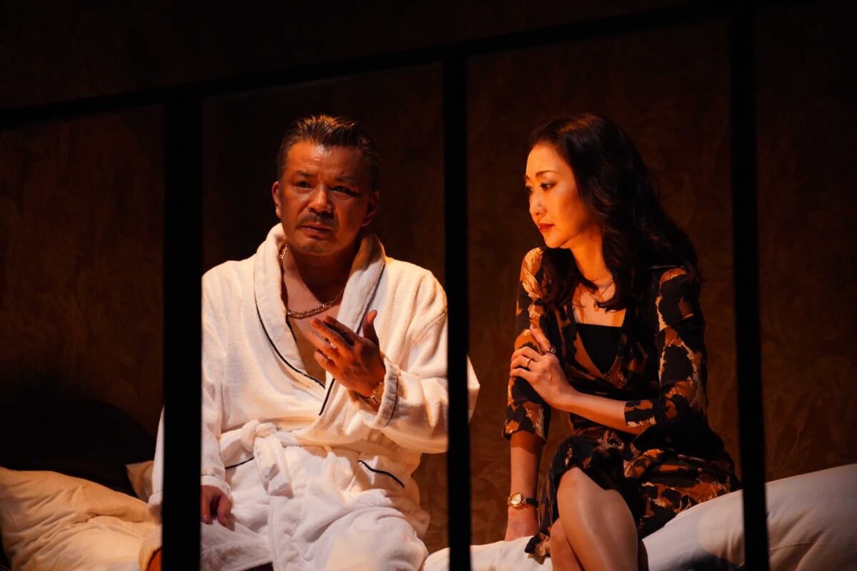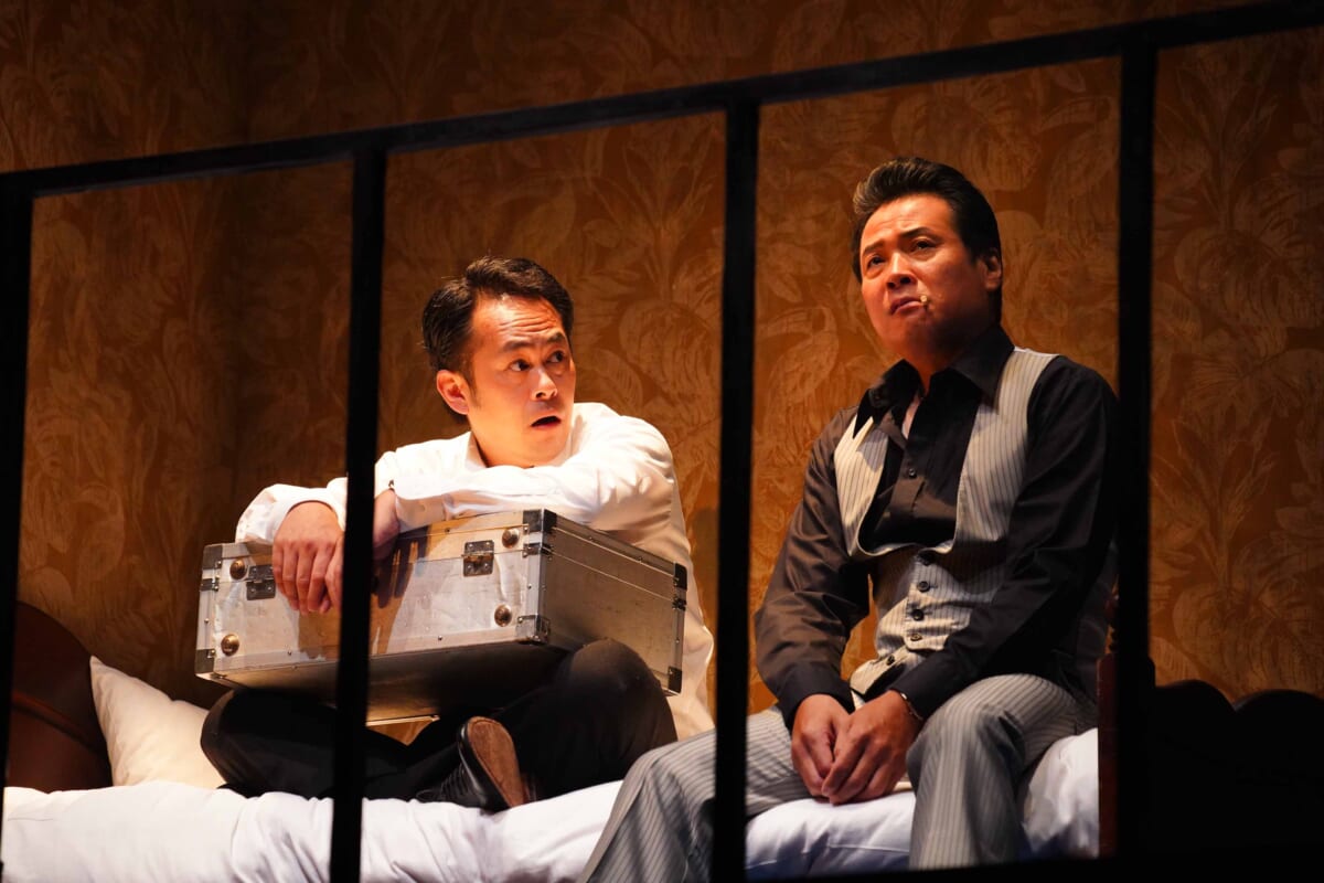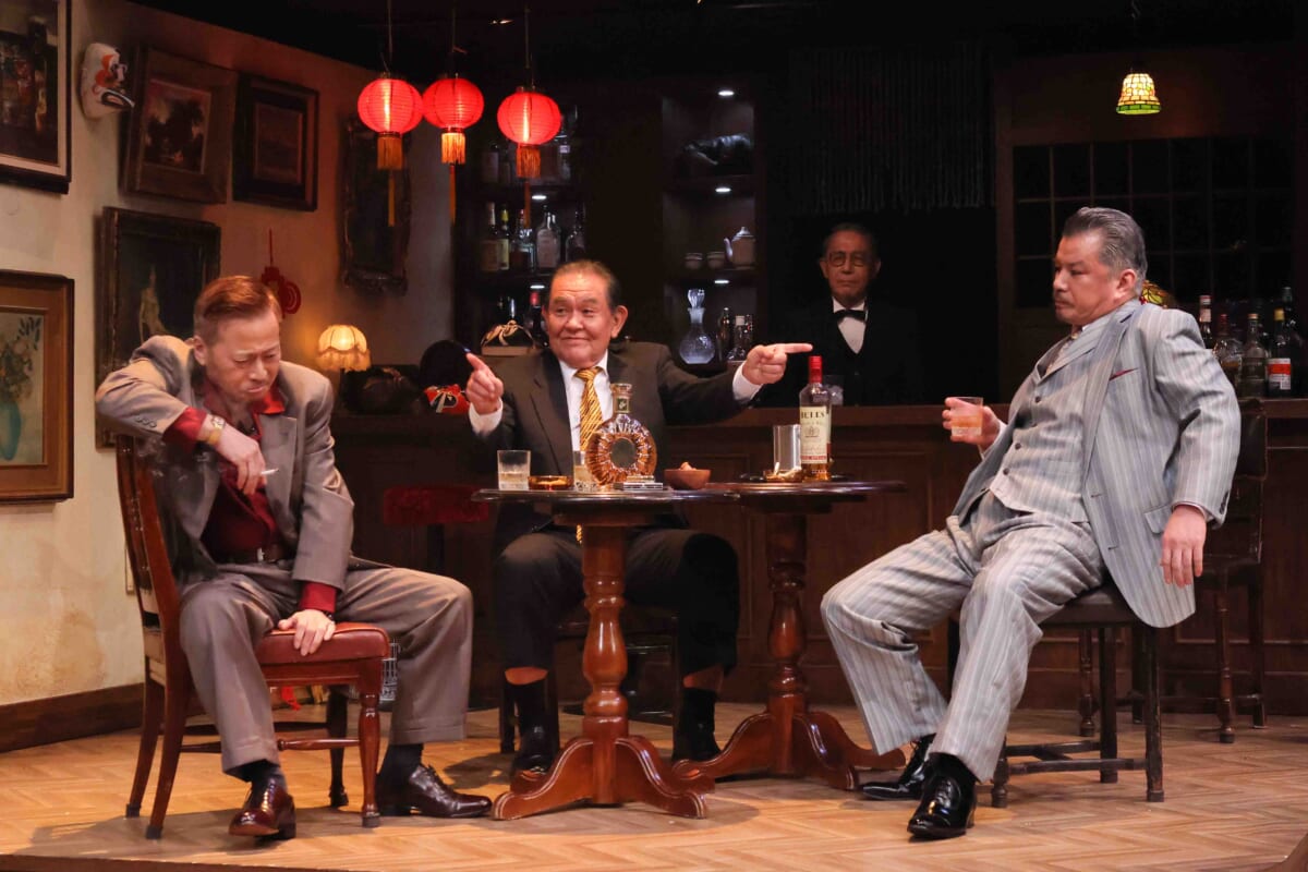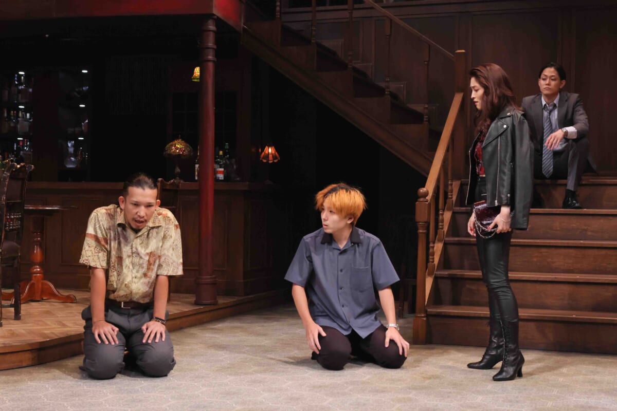 玉城 “悪”のレベルが強すぎですよね(笑)。でも皆さん、普段はとても優しくて。なかでも、僕の父親役を演じられた哲さんは、見た目に怖さがあるものの(苦笑)、ご本人にもお芝居にも、すごく愛があるんです。劇中で哲さんが仲間に自分の息子のことを語るシーンがあるのですが、初めて稽古場で見たときは、僕も息子の純の気持ちになって、理屈じゃなく涙が出てきました。2人は決していい親子関係ではないんです。でも、たまに出る愛情がものすごく深い。あのシーンを見た瞬間、僕と哲さんの親子の関係性が出来上がったような感じがしました。