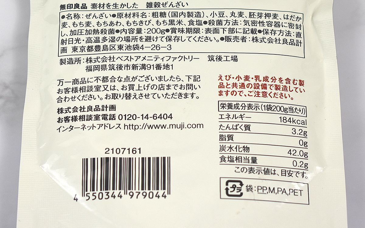 ●「素材を生かした 雑穀ぜんざい」(無印良品)
