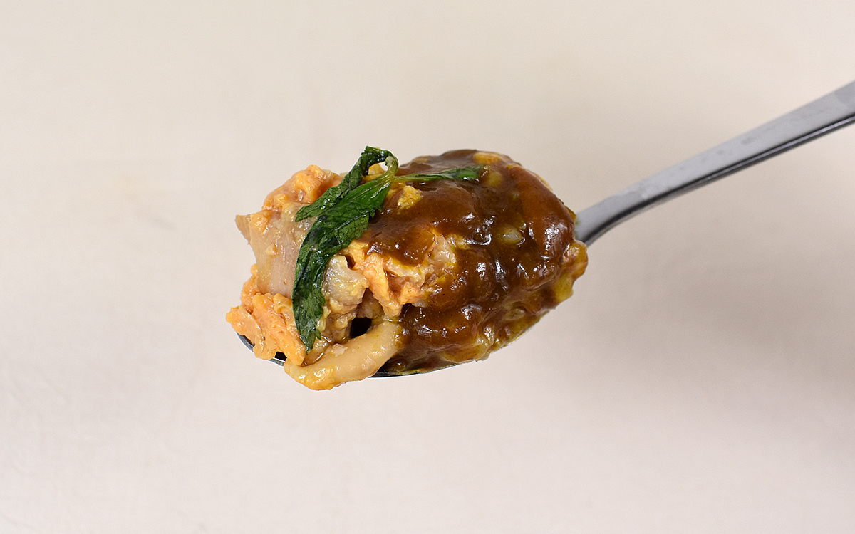 ちなみに、商品公式ページでは各素材をそれぞれで味わうだけでなく、“全部混ぜ”でいただく方法も推奨。「さすがに合わないのでは…」と思いながら口に運んだところ、これが予想外に大当たり! 卵の甘みが刺激を中和しながらカレーのコクはしっかり残し、まろやかな味わいをじっくりと感じさせてくれます。またカレーとふんわり卵が重なった不思議な食感も、“新感覚”という言葉以上の感動が…。