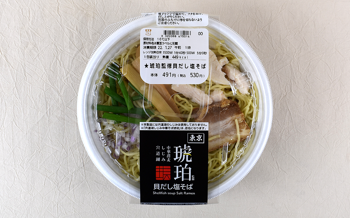 同商品を監修した東京・大田区の「宍道湖しじみ中華蕎麦 琥珀」は、「TRYラーメン大賞 2019-2020」新人大賞に輝いた淡麗貝だしスープの注目店。発売に先立ち商品をPRした同店Twitterによると、「貝だし塩そば」はローソン担当者の協力のもと何度も試作を重ねて仕上げられたそうです。