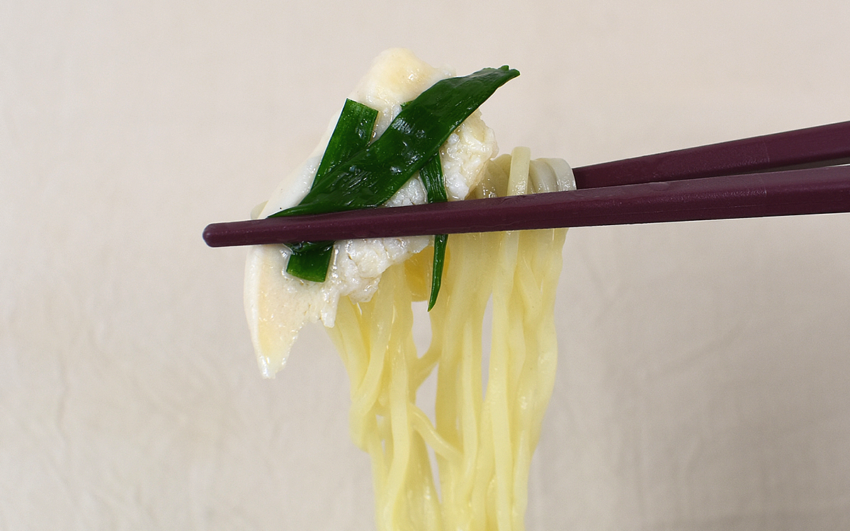 もちろん、スープと麺の相性もばっちり。スープをたっぷりまといながら口の中に飛びこんでくる麺は、噛めば噛むほど弾力のあるモチモチ食感が伝わってきます。