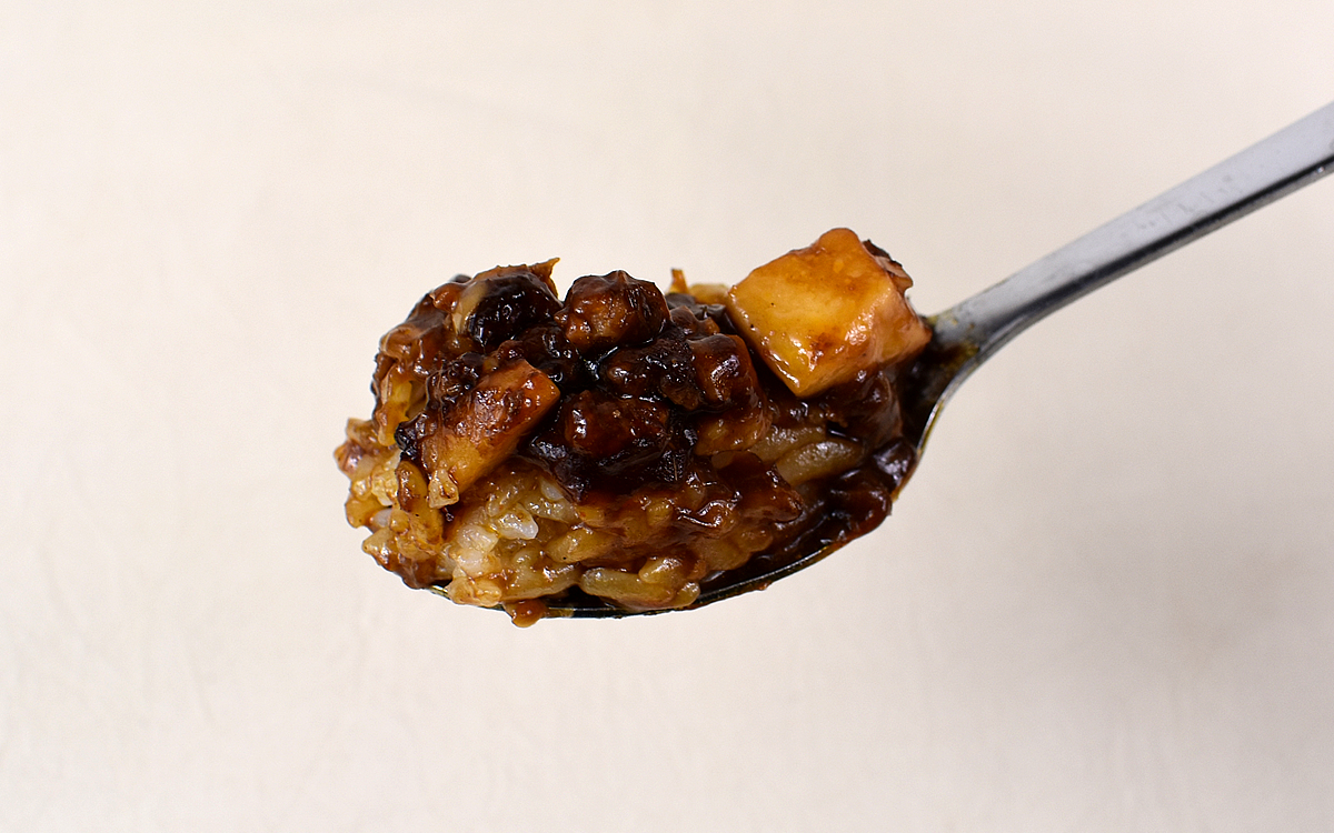 フタを開けてみたところ、麻婆ソースによる“甘辛い香り”が。一瞬にして食欲を刺激されて、同商品に対する期待度が大幅にアップ。麻婆豆腐とご飯をセットにして食べてみると、酸味と甘み、辛味が同時に広がりました。3つのテイストが合わさるにつれて旨味が上昇し、ソースの辛さによってやみつき度も高まります。冷凍食品とは思えないくらいの本格中華に近い香り&味という印象でした。