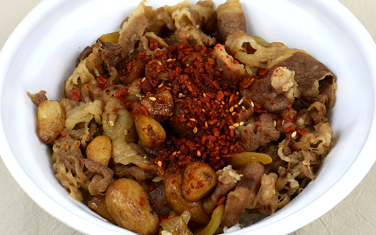 まず気になるのは具材のラインナップ。すき家の公式サイトによると、フライドにんにくとガーリック、唐辛子を組み合わせた特製フレーク、特製焼肉だれを絡めたカルビ肉をトッピングしているそうです。カルビ肉は、注文ごとに焼き上げるというこだわりも。辛さが際立った商品のため、サイト上には“辛いものが苦手な方やお子様はご注意ください”と記載されています。果たしてどれほどの辛さに仕上げているのでしょうか?