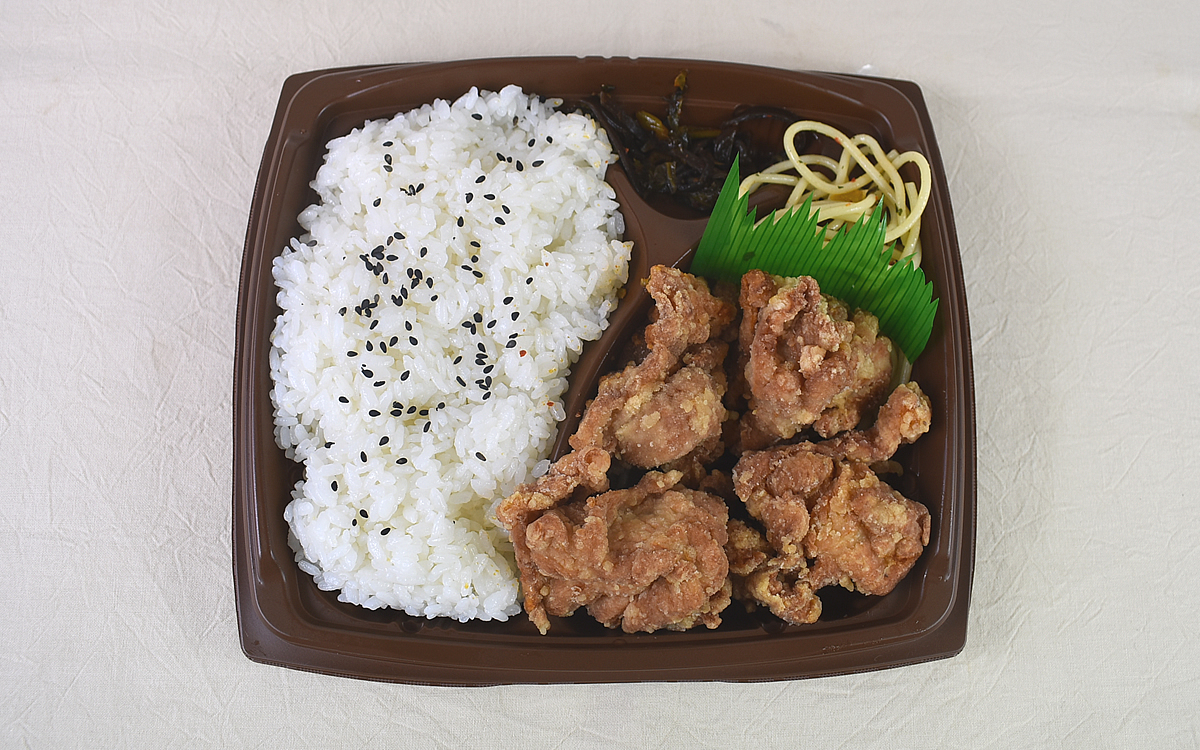 一見すると普通のから揚げ弁当ですが、セブンの公式サイトによれば“とりもも肉をじっくりと漬け込むことでジューシーで柔らかく仕上げている”とのこと。トッピングとしては、高菜漬けときくらげ、スパゲッティを採用しています。