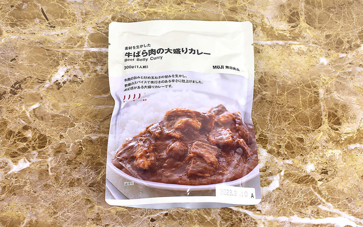 子どもから大人まで幅広い世代に愛され、国民食に挙げられるほど人気の高いカレー。自宅でも作れるメニューとはいえ、時間がない場合はレトルトパックに頼りたくなりますよね。そんな時でも具材や量にこだわりたいところ。そこで今回は、無印良品で販売されている「素材を生かした 牛ばら肉の大盛りカレー」(350円/税込)という商品を購入してみました。