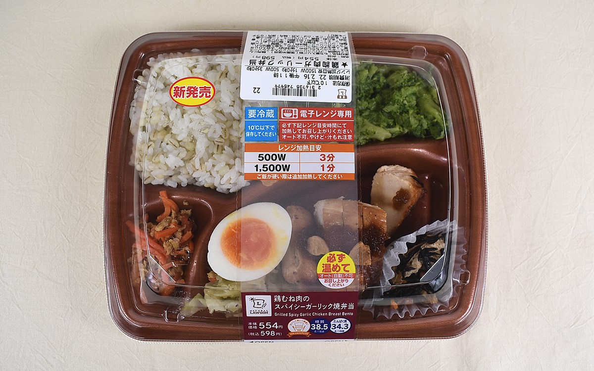 健康的かつ味わい深いテイストを堪能できるロカボメニュー。体のことを考えて糖質控えめの商品を購入する人は多いと思います。そこで今回取り上げるのは、ローソンから発売された「鶏むね肉のスパイシーガーリック焼弁当」(598円/税込)。ガッツリ系の一品かと思いきや、豊富なたんぱく質を手軽に摂取できるロカボ弁当です。利用する人は多く、ネット上に「ヘルシーなのに食べごたえ抜群!」「優しい味つけがお気に入りです」といった声が寄せられていました。さっそく同商品の魅力に迫っていきましょう。