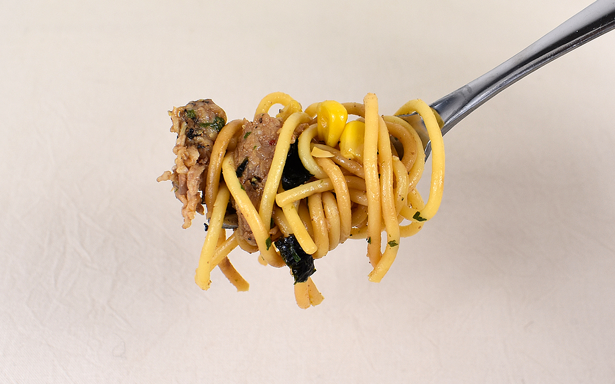 同商品には黒胡椒が使用されていますが、想像していたほどの強い刺激は感じず。細かく刻まれた唐辛子も含め、刺激より香りのほうが勝っている印象です。またトッピングの海苔が時おり口の中に飛びこんでくることで、和風パスタのテイストをより一層感じることができました。
