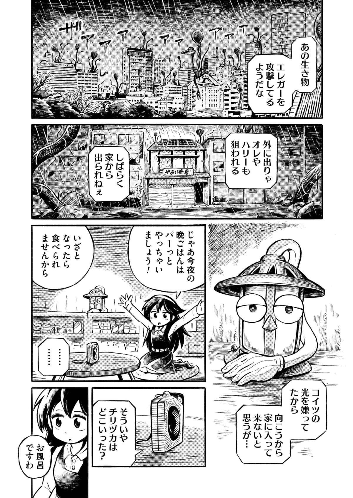 本連載は「モノ」をテーマにしたマンガ連載「エレクトロジー Internet of Things」。何不自由なく暮らしてきたお嬢様・神条ツクモが、荒れ果てた「アキバ」で謎の生命体「エレガー」と出会う!