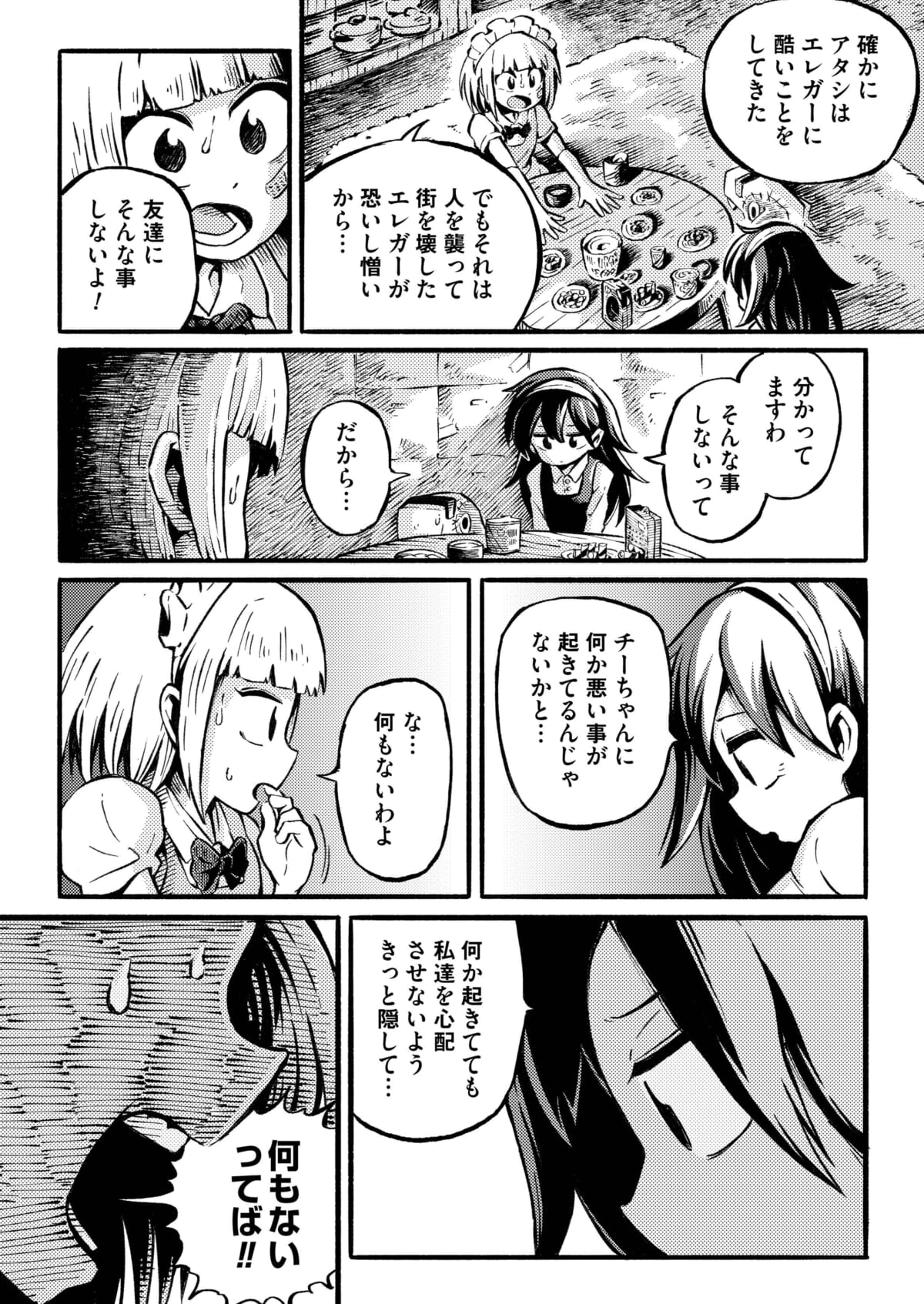 スマホエレガーに寄生されてからというもの、体に抗いきれない異変を感じ始めるチリヅカ。ツクモもその異変を感じ取り指摘するが、チリヅカの中に潜む「異形」が現れて…!!