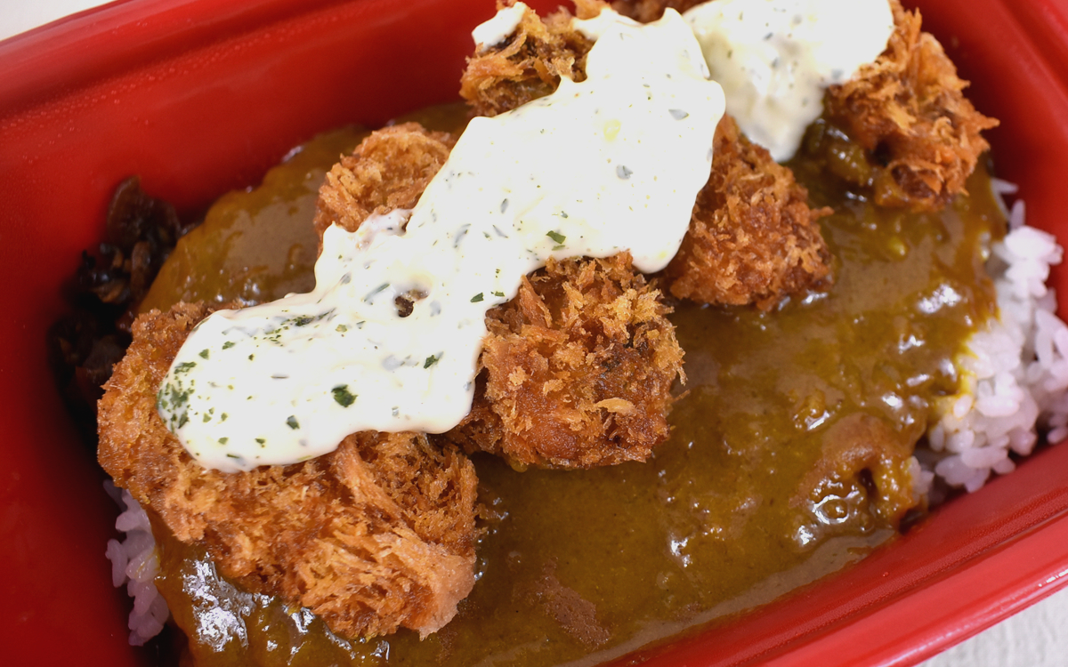 “タルタル推し”の私は迷わずタルタルをカキフライにかけ、ひと口味見。衣のサクっとした食感の後に、濃厚な魚介の風味が広がりました。さらにタルタルのまろやかな酸味が加わることで、よりミルキーな味わいに。気になるカレーとの相性は、程よいスパイシーな辛味とカキの旨味が絶妙に合う印象。サクサク感を残したい人はカキフライを食べる直前に、タルタルを乗せるのがオススメです。