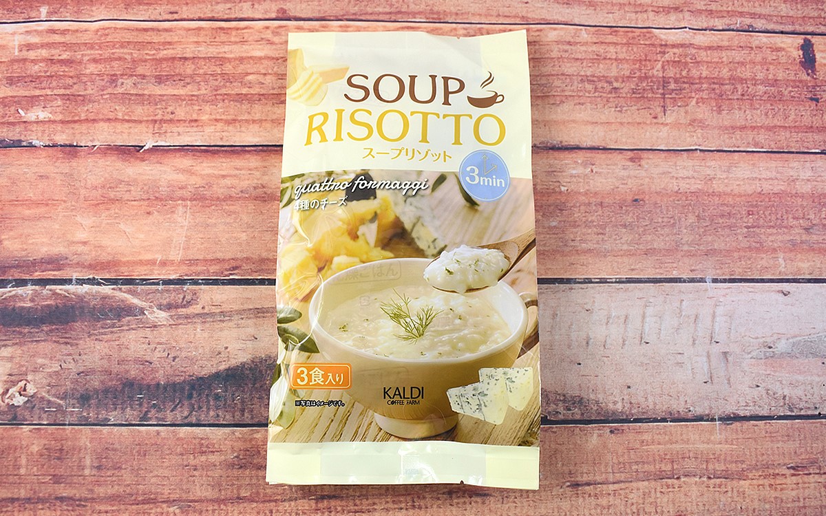 イタリアの代表的な米料理の1つ「リゾット」。日本ではスープタイプのリゾットもよく見られます。インスタント食品を多く扱っているカルディでも「スープリゾット 4種のチーズ」(343円/税込)を販売中。チェダー・ゴルゴンゾーラ・パルメザン・モッツァレラチーズを贅沢に使ったスープリゾットの味はどれほどのものか、レビューしていきましょう。