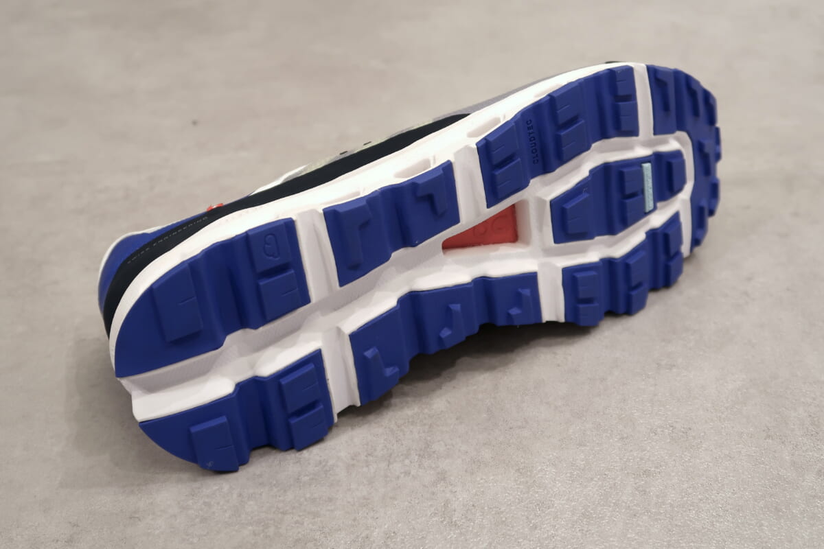 続いてピックアップしたのは「Cloudvista(クラウドビスタ)」。こちらはトレイルランでの使用を目的としたモデルで、まず高い反発性を備えながら軽量かつ、耐久性と温度変化耐性に優れたスーパーフォーム「Helion(R) (ヘリオン)スーパーフォーム」を採用。Onの独自の素材で、シューズのレベルを一段階上に引き上げてくれます。その機能性に同調するようにメッシュのアッパーは透湿性に優れ、見た目的にもアウトドア感を演出。Onの持つ機能性を見事にトレイルランに落とし込んでいます。