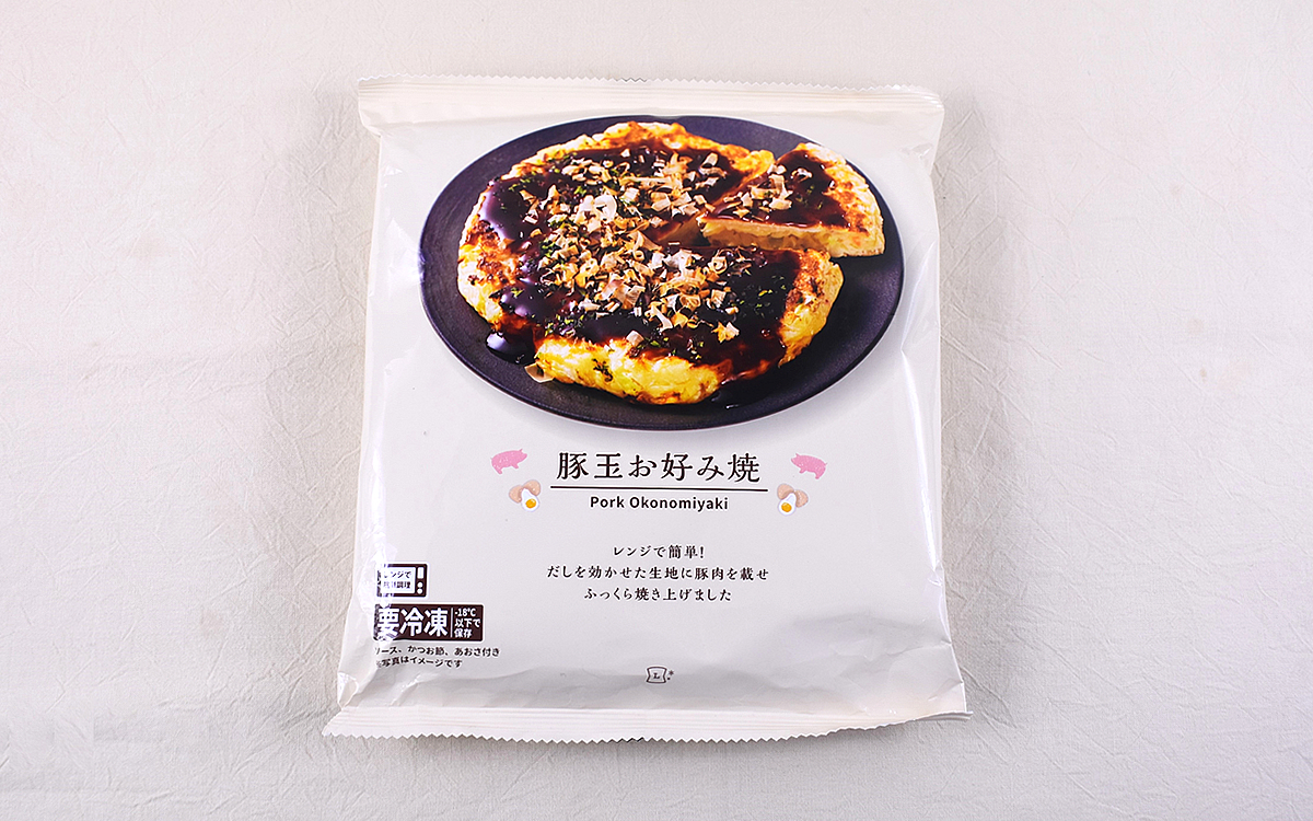 そもそもリニューアルした「豚玉お好み焼」は、以前よりも生地を厚くすることにより“ふっくら感”をアップさせています。さらに豚肉のサイズも大きくし、食べごたえのある商品にアレンジ。具材は豚肉とキャベツ、紅しょうが、揚げ玉とシンプルな構成。