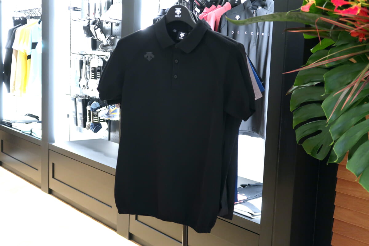 若者向けのENVOY(エンボイ)ラインからは、「SUNSCREEN&FUSION MOVEテープロゴプリント半袖シャツ」(1万6500円)を紹介します。太陽光を反射して衣服内の温度上昇を抑えるサンスクリーン機能と、運動パフォーマンスを向上させるパターン設計のフュージョンムーブを採用。特徴的なのが、肩の部分に縫製がない1枚布で仕上がっていること。肩の動きを邪魔せず、違和感を払拭させて快適なスイングを実現します。