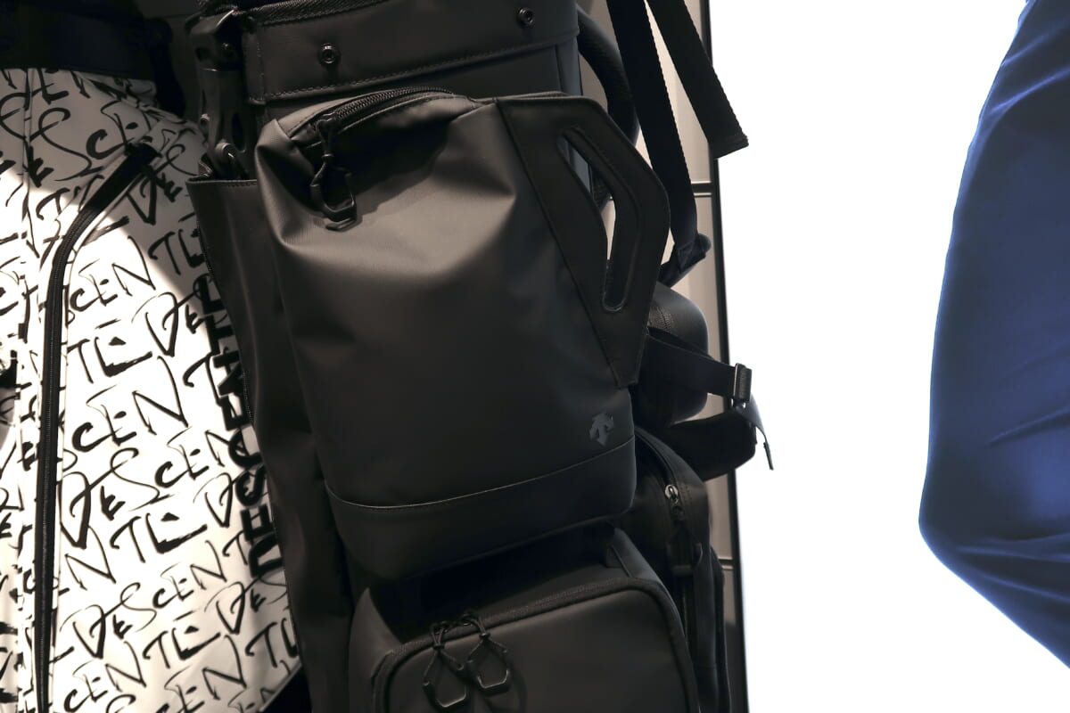 g-arcからはスタンド式の「カスタムキャディバッグ(9.5型)」もデビュー。特徴的なのは、ドイツのアタッチメントメーカー、FIDLOCK製のマグネットを採用し、キャディバッグからポーチ、シューズケース、小物入れ2つ、合計4つのパーツが取り外せること。シューズケースは外してロッカールームに置き、ポーチはカートバッグとして、小物ポーチはボール入れに利用と、これまでにないユニークな使い方ができます。価格は9万9000円。