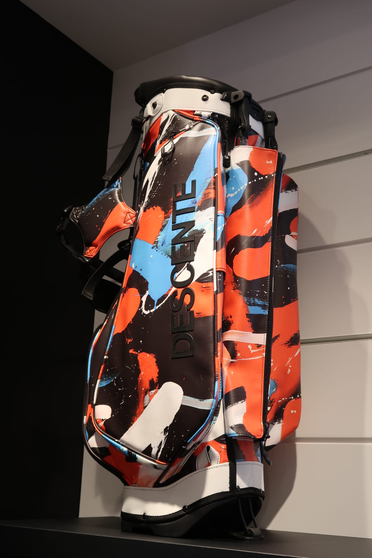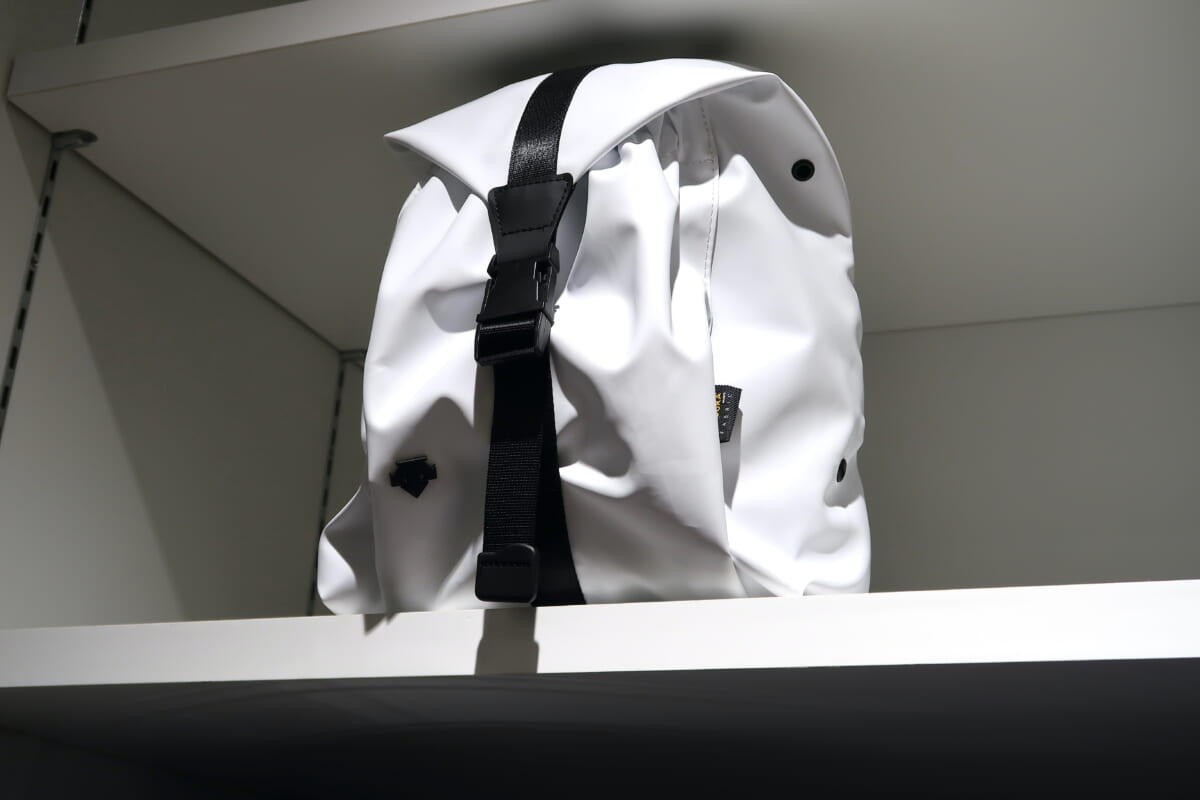 デサントは月別展開をしており、5月には書道家の万美さんがデザインしたウェアも登場します。筆で「デサント」とカタカナで書かれたカラフルなデザインで、現在、「キャディーバック」(4万2900円)が先行発売されています。