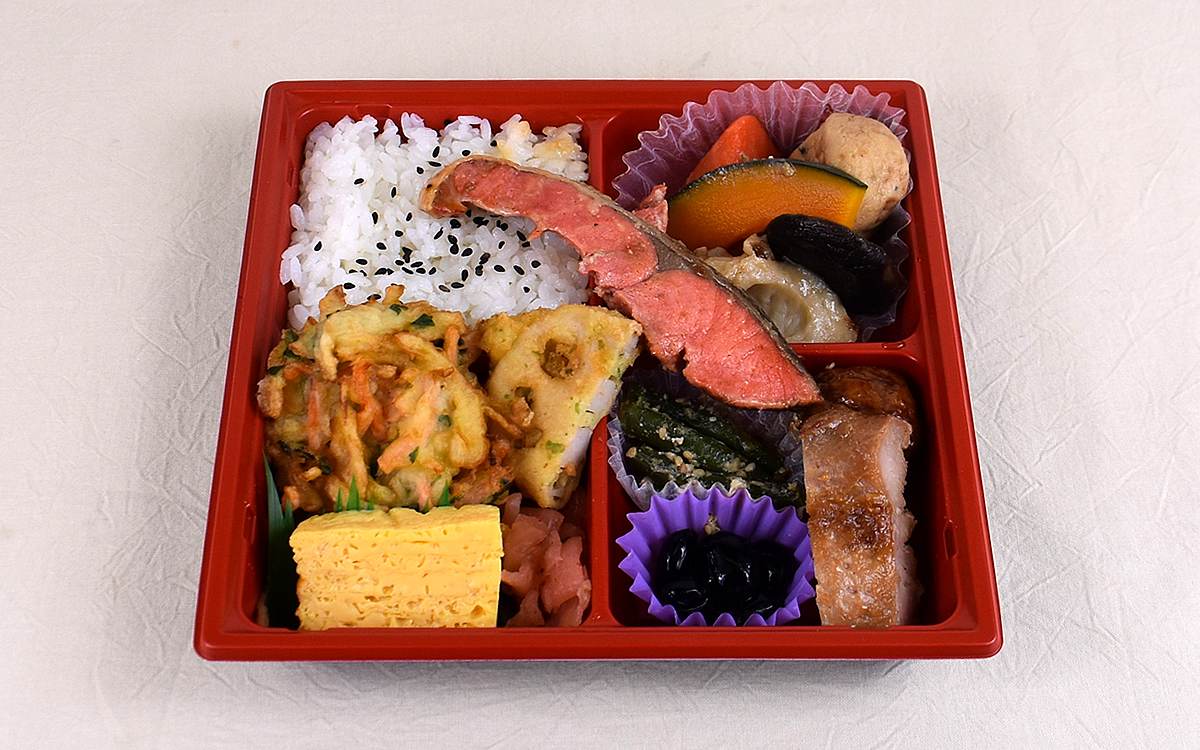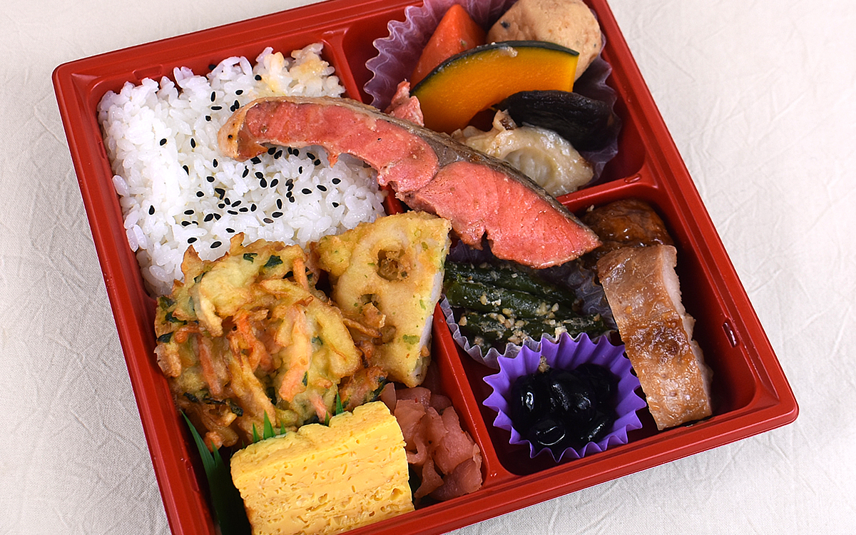 1種類のおかずだと物足りないという時は、定番おかずを多数集めた「紅鮭西京焼きと10品目おかずのお弁当」を購入してみてくださいね。