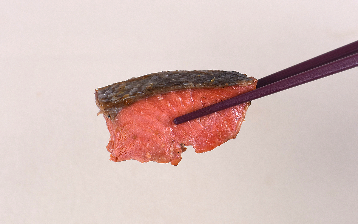 最初はやっぱりメインの「紅鮭の西京焼き」をパクリ。鮭特有のしょっぱさに味噌のほのかな甘さが加わり、絶妙なバランスを保っています。厚みのある身全体に味噌の味が染みわたっており、濃い味好きにはたまりません。