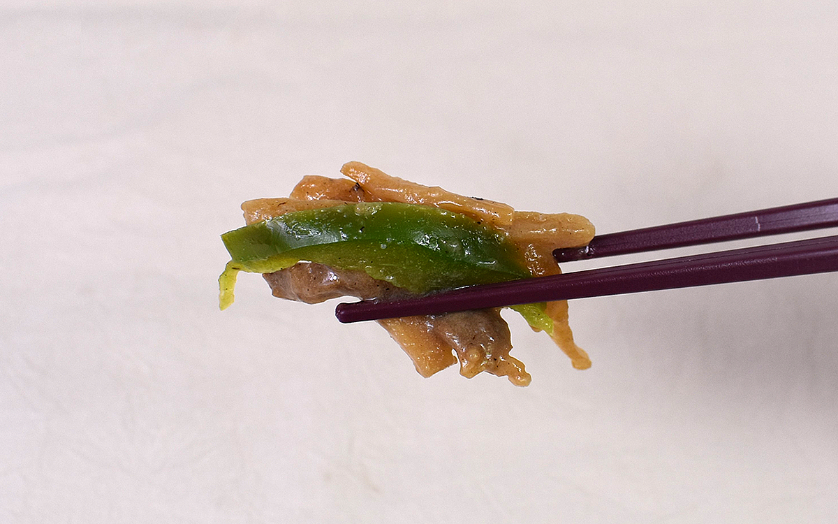 最初にチンジャオロースを実食。ポイントは、玉ねぎ、ピーマン、たけのこの歯ごたえとタレの味です。シャキシャキ&コリコリ食感の後に程よい塩味のまろやかなテイストが広がりました。豊富な歯触りが心地いいだけでなく、おいしさ満点のタレがやみつきに。また、こうばしい風味と卵の甘みが絶品のチャーハンともベストマッチ。