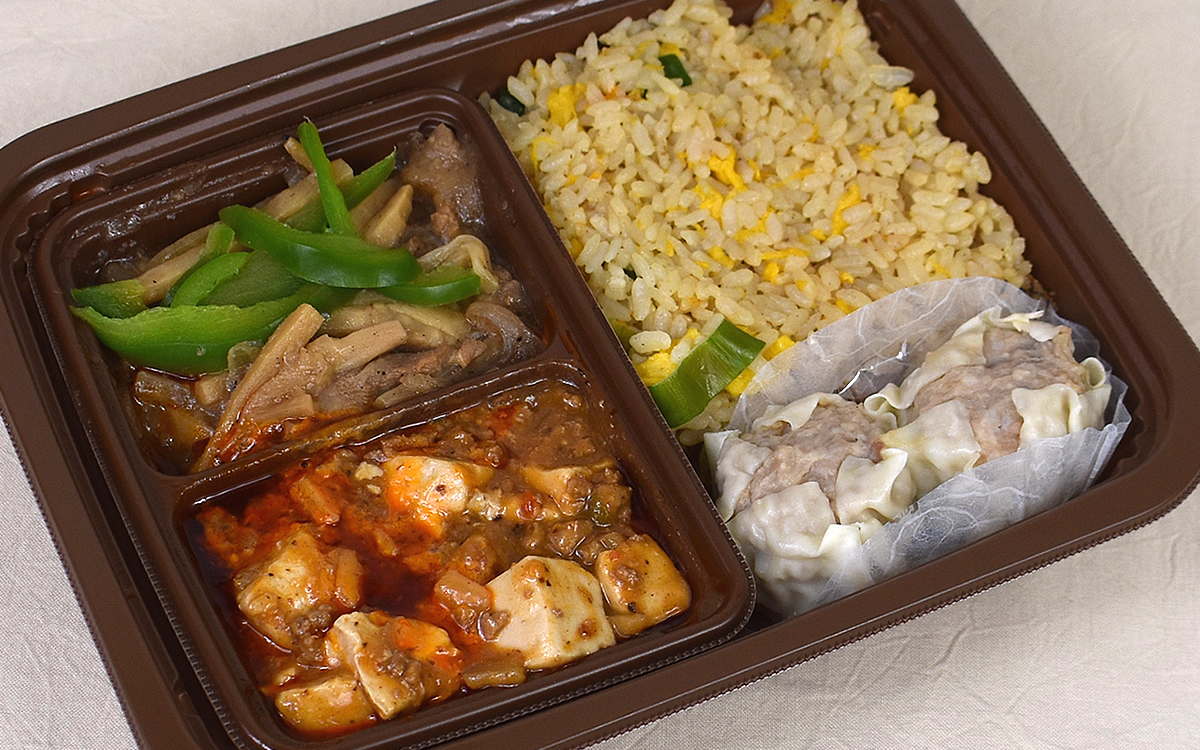 まず気になるのは具材のラインナップ。メインの具材としてチンジャオロースと四川風麻婆豆腐、他にはシュウマイとチャーハンが。セブンの公式サイトで“本格的な4種類の中華料理を楽しめる”と説明がある通り、ボリューム満点のお弁当に仕上げています。
