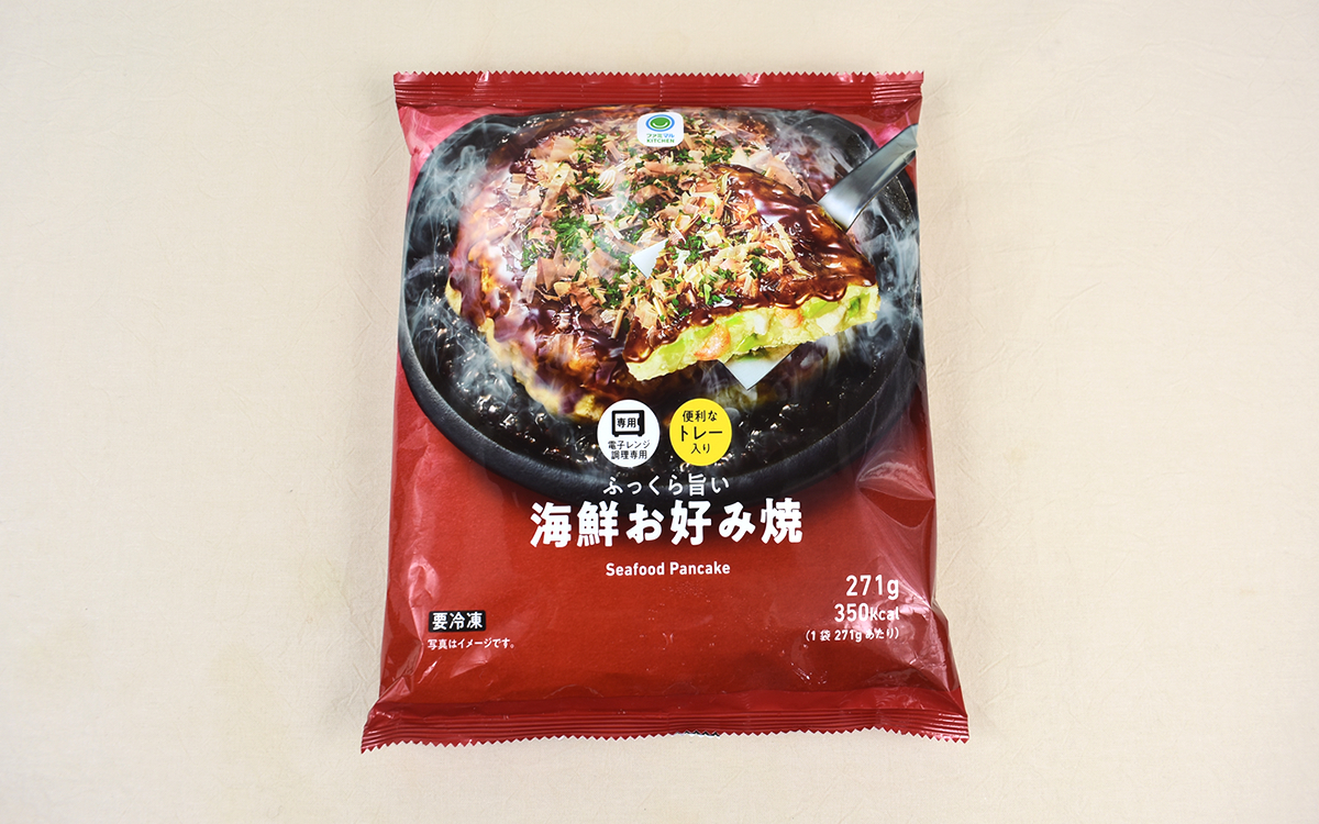 本場の関西地区に限らず、日本中の人々に愛される庶民的なメニュー・お好み焼き。自宅で調理できるほど馴染み深い一品とはいえ、お好み焼き粉や具材など材料一式を揃える手間がありますよね。そんな時に利用したいのがコンビニの冷凍食品。そこで今回は、ファミリーマートで販売されている「ふっくら旨い海鮮お好み焼」(258円/税込)を購入してみました。