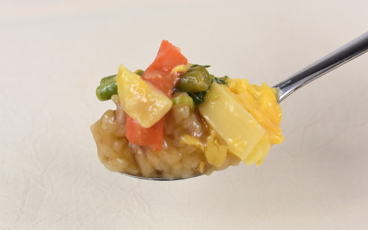 ごはんを覆うふわふわのたまごは、かなりの滑らかさ。たまごのコクがほかの具材を包み込んで、まろやかな味わいを楽しめます。