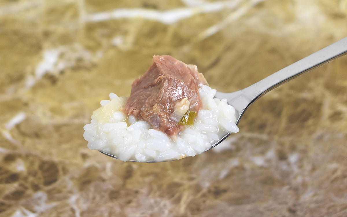 さっそく、ホカホカのご飯を用意して温めたソルロンクッパを投入。スープをしっかり絡ませ、湯気の立ち上がるご飯から一口いただいてみました。すると口の中で牛骨の旨味が大爆発。トロっとしたスープの舌ざわりも心地よく、スプーンで口へ運ぶたびに奥深いコクが広がっていきます。臭みなど極端に強いクセは感じず、思いのほか繊細で優しい味わいにびっくり!