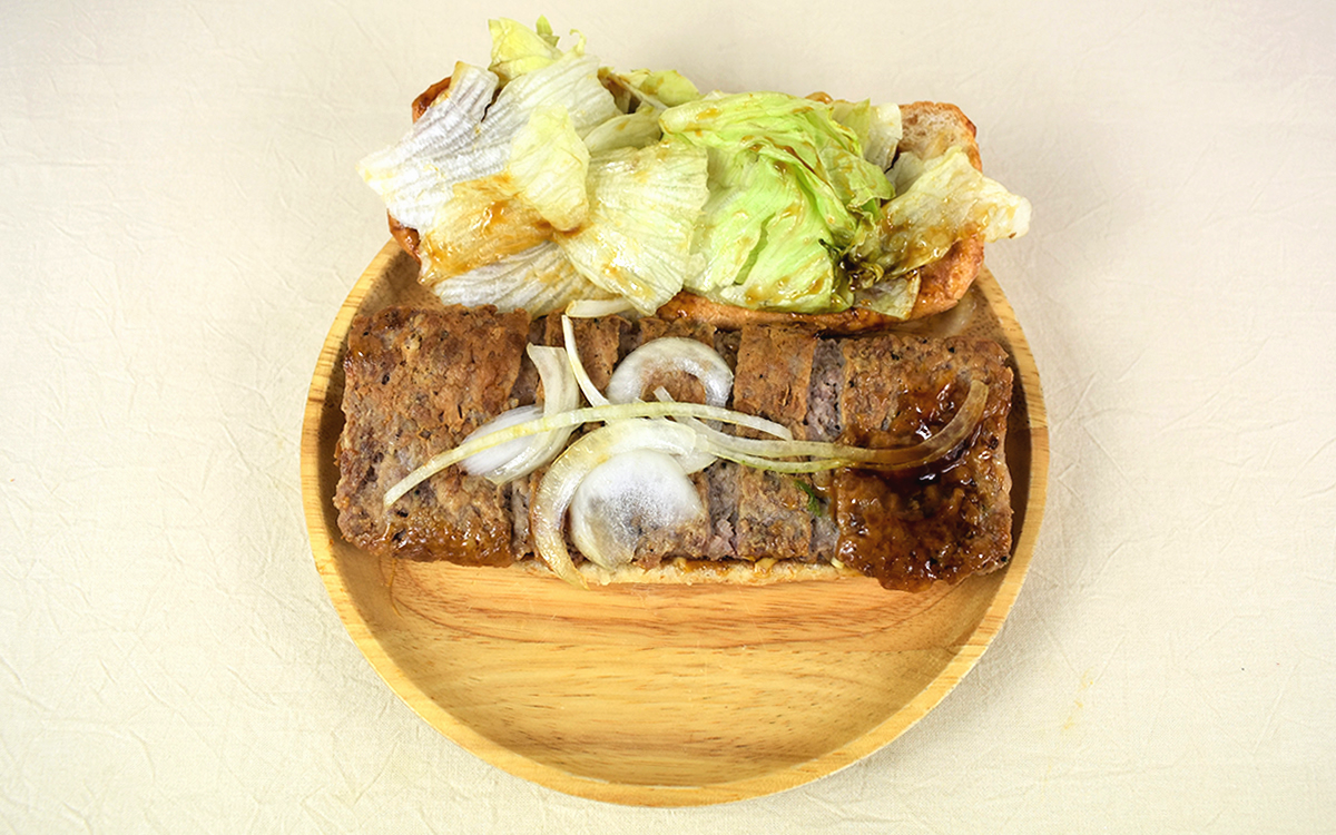 スライスオニオン&レタスはシャキシャキとした食感が爽快。程よい硬さに焼き上げられていて、ムニュっとした弾力がクセになります。小麦の風味が感じられる優しい甘みもたまりません。