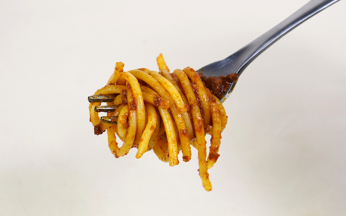 実際にパスタを一口食べてみたところ、とろりと舌先を流れるソースが絶品。コク深い味の奥にほんのりと感じる甘みがたまりません。ふんだんに使われた牛ひき肉も、噛む度にポロポロと解けて程よい柔らかさです。