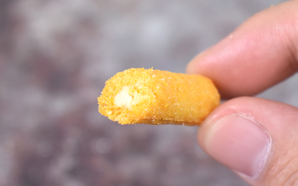 ひと口食べてみたところ、サクサクとしたクセになる食感が印象的でした。味わいとして最初に感じたのは生地のチーズ味で、程よい塩けがGOOD。後からダブルチーズの濃厚かつミルキーなテイストが加わり、口の中は旨味でいっぱいに。噛めば噛むほど塩けとチーズ味が絡み合い、さらにおいしさを更新していきます。